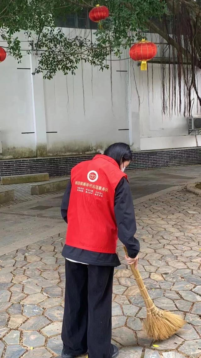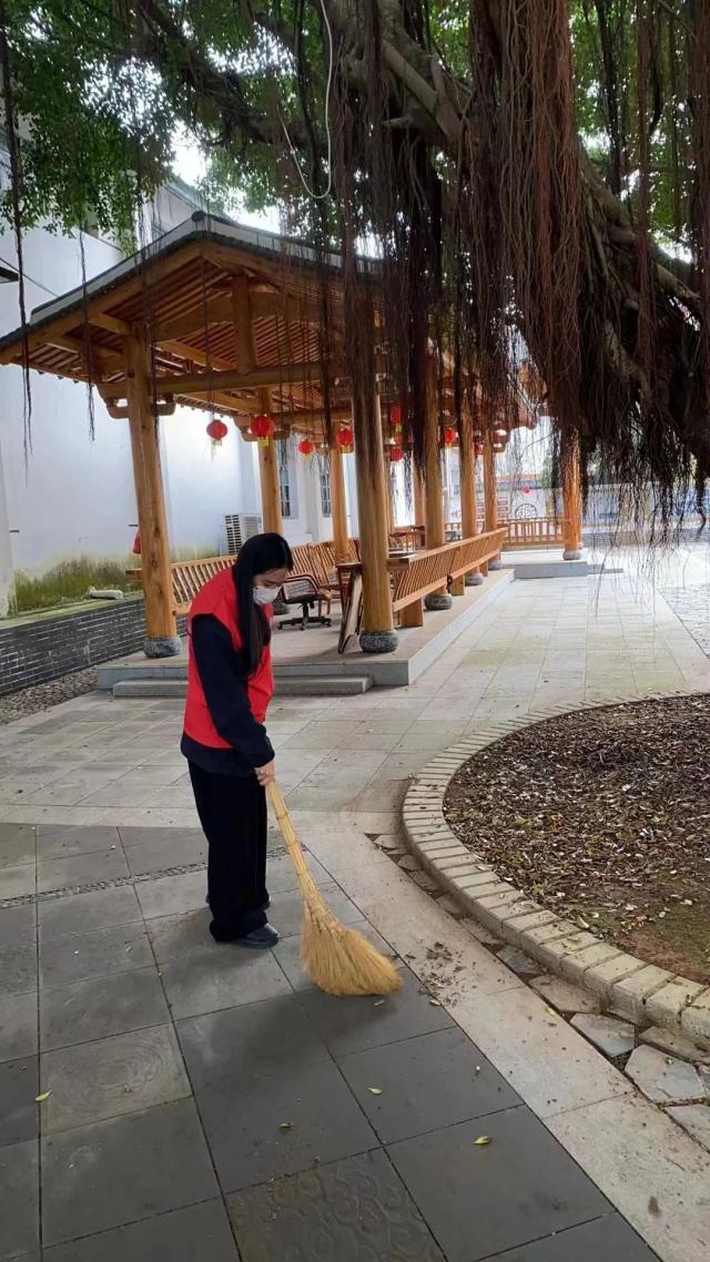 在清扫服务活动中,有村民给我们送水,跟我们说“今天辛苦啦”,我心里颇有感触,小时候看着别人打扫这条街道,心中并没有什么波澜,直到现在自己上手,亲身经历过才会懂得其中的辛苦,庆幸自己已长大,可以为家乡社区环境贡献一份绵薄之力。