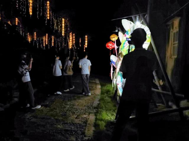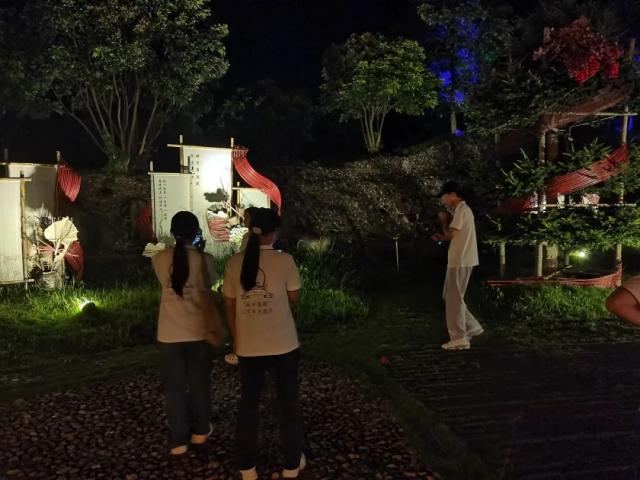 “窑山公园”,因宋代窑山而得名,占地约200亩。龙年春节期间,村子依托“窑山公园”整合提升推出“磁窑圩市”,打造沉浸式宋代旅游观光路线。夜间的灯光秀,为乡村夜晚增添一抹亮色,既活跃了乡村夜生活,又吸引了游客,成为推动乡村旅游和文化交流的新载体。实践队沿窑山公园游览路线进行宣传拍摄,并进行了一场灯光秀文旅直播,进一步挖掘与传播乡村的文化价值。