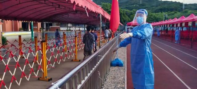 8月20日,情况开始好转,鉴于疫情防控需要,从原来要求的全员每天一检改为三天一检,育才小学核酸检测点完成组织任务后进行撤离,而我的防疫志愿服务仍在路上。紧接着,我又投入到海发社区文化中心核酸采样点进行志愿服务工作。有了先前的工作经验,我已对核酸检测点的所有工作有了清楚的了解,我不再局限于通道维护秩序工作,而是开始进行调控、信息录入等其他工作,一切都在有条不紊地进行着。