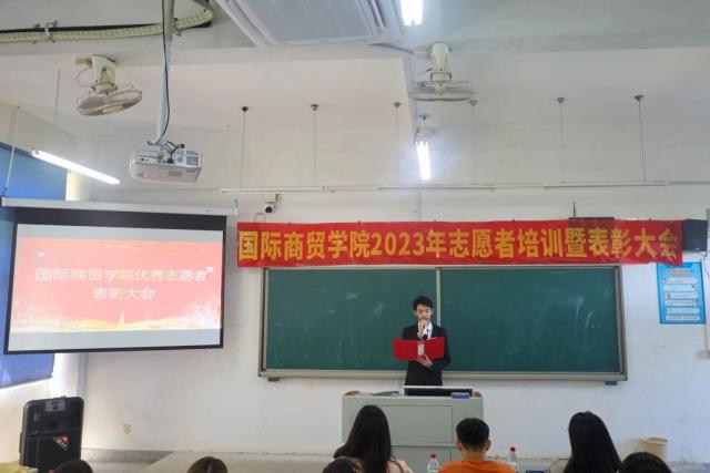 廖宇琛先向受表彰的青年志愿者们表示热烈祝贺,同时衷感谢学院志愿者协会及广大志愿者们过去一年的辛勤付出。她表示,这一年志愿者协会扎实有效地开展一系列丰富多彩的志愿服务活动,取得了较好的社会效益的同时,向外界展示商贸学子青春风采。她鼓励大家,应继续保持,积极创新,将志愿者活动越办越好,全面发展。