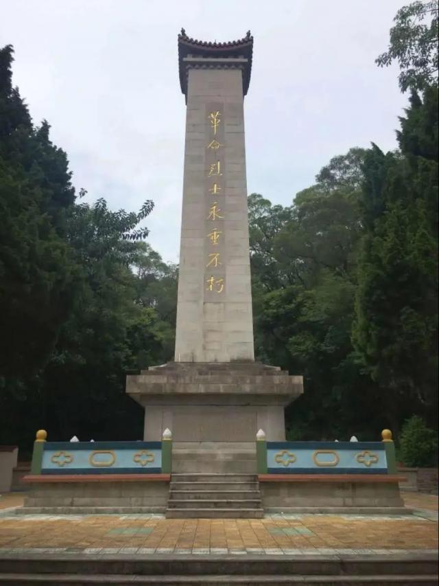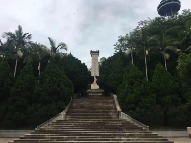 来到良峰山下,在上山主甬道顶端处,映入眼帘的是由34个石级托起挺拔的碑体,直指云天,正面镌刻革命烈士永垂不朽的金字,熠熠生辉。碑文描述了当年革命的艰辛,革命烈士英勇杀敌,不畏艰险。无论岁月如何变迁,烈士的英气永远不会散去。周围的雕花石栏杆,与背靠的山峰、环拱的塔松、长青的槟榔、火红的红棉、翠绿的劲竹互相辉映,宏伟壮观。郁郁葱葱的树木让人顿时精神气爽,拾级而上。