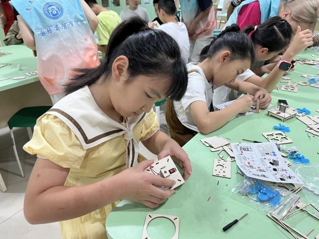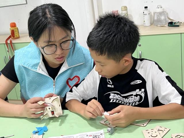 科学活动现场,志愿者们不仅为小朋友们带来了精彩的科学知识小科普,还特别准备了一项充满乐趣和挑战性的实践活动——搭建风力发电机。在搭建过程中,他们需要仔细观察、认真思考、动手操作。这一环节旨在通过实际操作,培养小朋友们的动手能力和对科学原理的深入理解。通过青年志愿者老师的科普与以及互动体验活动,为小朋友们提供了沉浸式体验科学的机会,小朋友们在玩中学、学中玩,做到有实践、有收获、有乐趣。