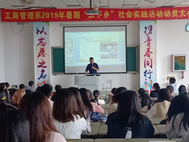 接着,工商系党总支副书记张宇泉向全体参会师生做思想动员讲话,通过展示往年优秀团队的实践做法,挖掘实践活动创新点,并提供2019年暑期“三下乡”社会实践活动建议,鼓励所有师生积极参与,将暑期“三下乡”社会实践活动做好做优。