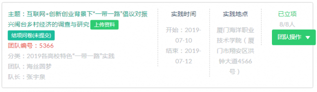 在此次全国大学生暑期社会实践专项活动中,我系结合学院的暑期三下乡社会实践活动,认真组织材料申报,经过激烈角逐,从1267个项目中脱颖而出,项目《互联网+创新创业背景下“一带一路”倡议对振兴闽台乡村经济的调查与研究》成功立项,该项目由工商系党总支副书记张宇泉、程欣然老师指导,团队成员包括:郑静(物流3182)、陈哲乾(邮轮3181)、李湘婷(邮轮3181)、 吴凯(邮轮3181)、陈红敏(国商3182)、林灿毅(国商3181)。