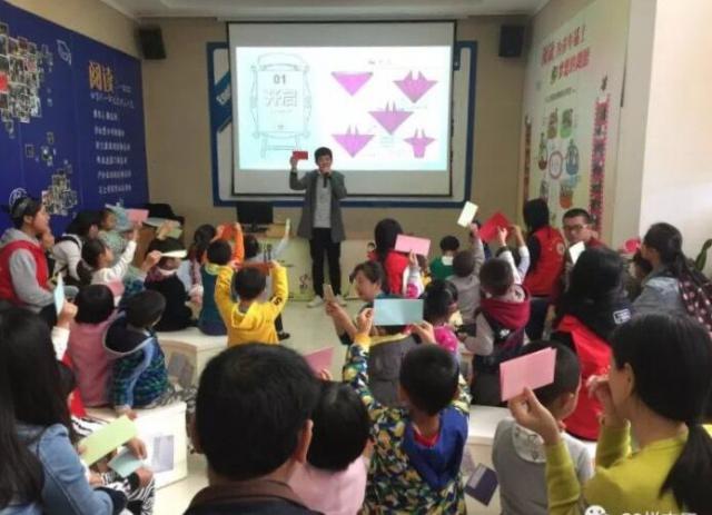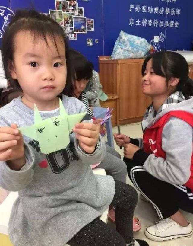 精彩的内容讲完之后,由帅气、颜值爆表的志愿者哥哥,来教小朋友们折小牛。小朋友们刚开始手忙脚乱着急想要自己制作小牛,在志愿者哥哥姐姐的帮助下,大家顺利的完成,并亲自给小牛画上眼睛鼻孔。大家互相举起自己的牛!牛!牛!炫耀自己的成功,大家都非常的欢乐。