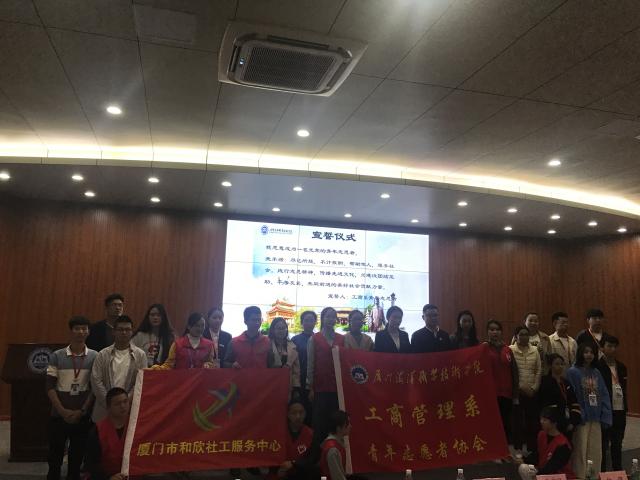 4月2日晚,我系与厦门市翔安区和欣社工服务中心签约授牌仪式在学院报告厅举行,系党总支副书记张宇泉,翔安区和欣社工机构负责人黄丹凤、青少年项目部部长林一郎、和欣社工代表、系教师代表及学生代表等200多人出席了本次活动。