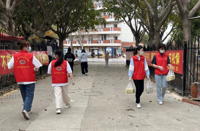 ​  近期,国内疫情防控形势严峻复杂,呈现点多、面广、频发的特点,我省各地也出现了一些疫情。在我院党总支的有力指导下,国际商贸学院志愿者协会迅速行动,积极响应疫情防控要求,成立青年突击队,奋战在疫情阻击战的第一线,前后组织开展全院师生核酸检测、“隔离不隔情,暖人更暖心”志愿送餐服务活动、食堂维序活动、校园超市疏导等工作。