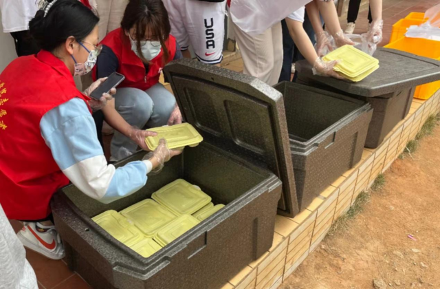 为切实保障疫情防控期间居家健康观测同学的生活需求,贯彻落实“为同学办实事”的工作理念,国际商贸学院志愿者协会组织开展“隔离不隔情,暖人更暖心”志愿送餐爱心活动。3月17日开始,为隔离的同学送去早、中、晚三餐,带走他们的生活垃圾,志愿者们用自己的行动诠释了“奉献、互助、友爱、进步”的志愿者精神,他们表示:“我们与大家同在,疫情不退,我们不散”。