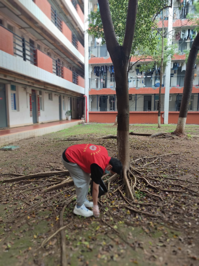 3月26日下午,30余名志愿者领取垃圾袋和手套后,分成四支小队伍,在1号楼、7号楼草坪、宿舍楼外围、宿舍楼道捡垃圾。风雨送春归,正值回南天,地面到处湿漉漉的,有些泥泞,给志愿者们的工作增加了难度,但是并不能阻碍他们的脚步,他们仍然深入每一个角落,努力做到垃圾不残留。
