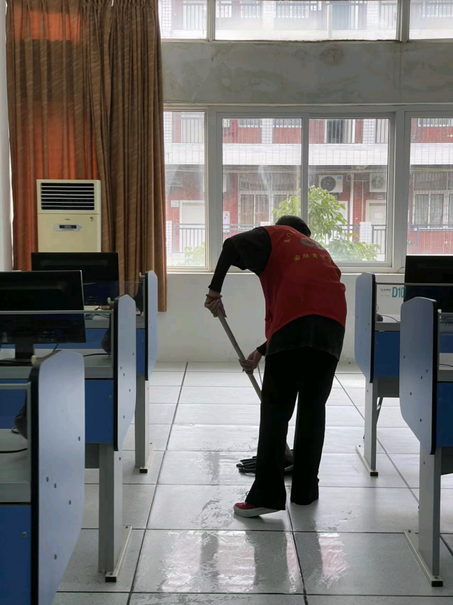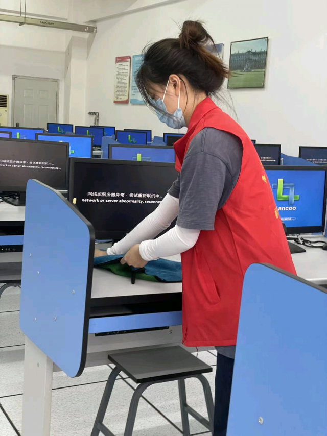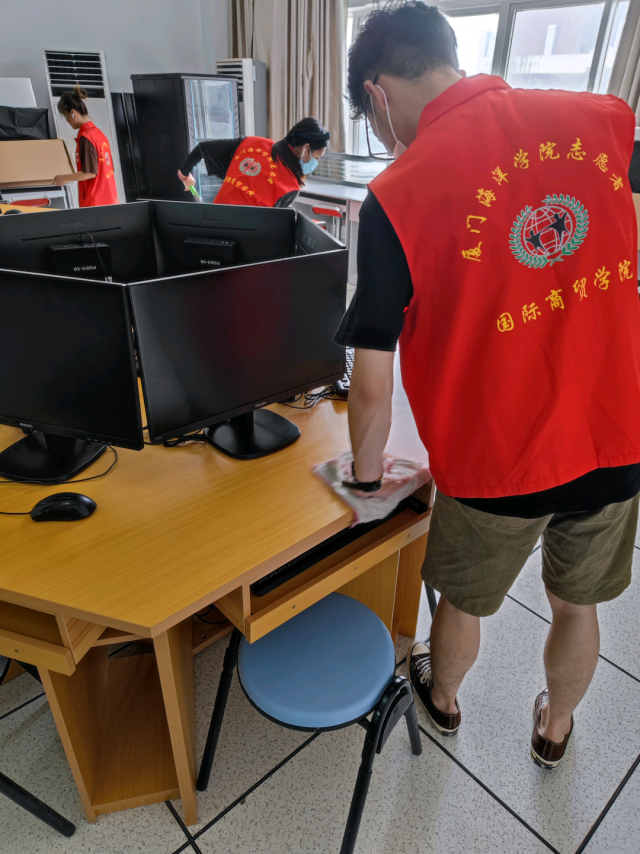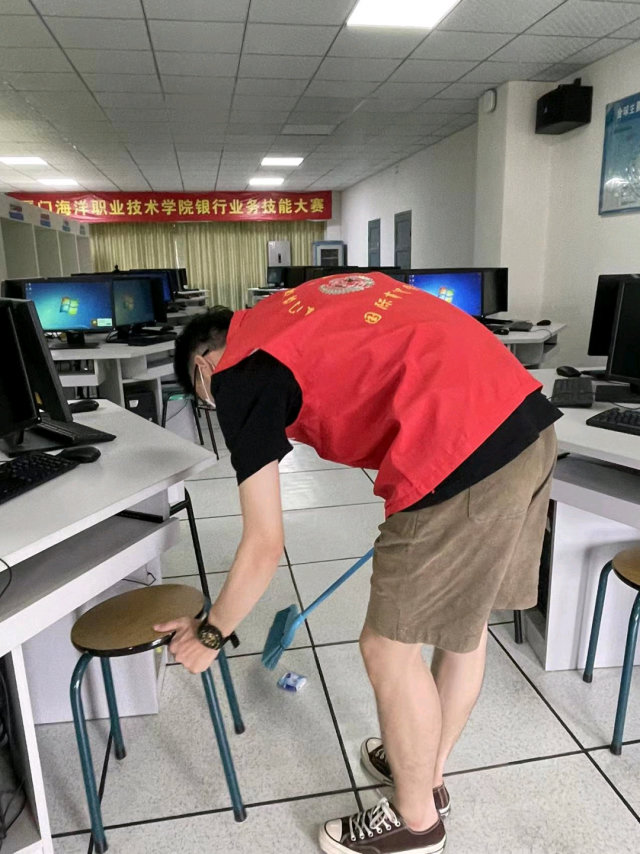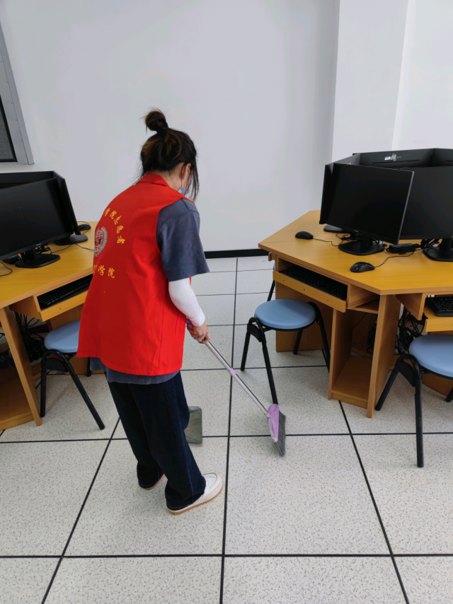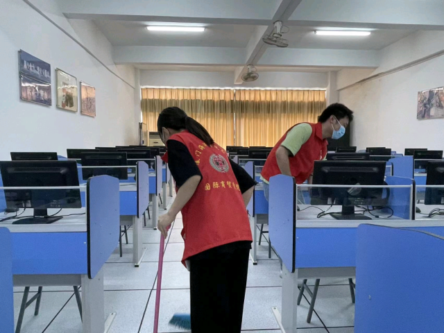 ​  为了进一步加强劳动教育、美化校园环境,国际商贸学院志愿者协会于7月1日在实训楼开展卫生大扫除活动,对实训室进行了重点清扫。