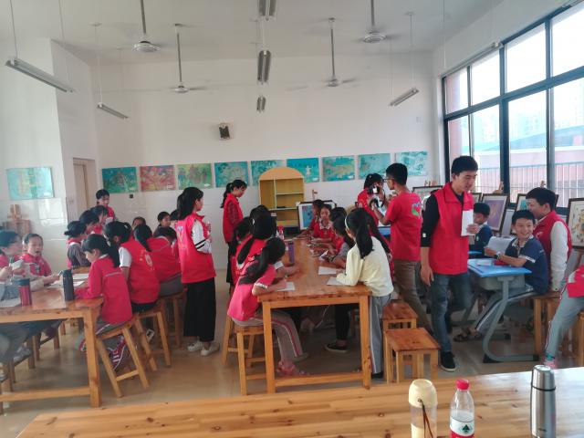 下课铃声响了,小朋友们充满笑容的来到了我们身边。活动还没开始,小朋友们躺在他们的哥哥姐姐肩上胸前拍照,互相聊天,重新介绍自己。小朋友和他们的志愿者哥哥姐姐已经紧密相连着,在活动开始前我们和小朋友一起玩了你画我猜的游戏,在玩游戏的过程中看到了小朋友们灵活的思维能力。