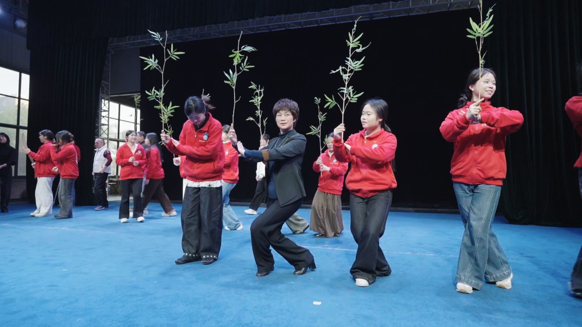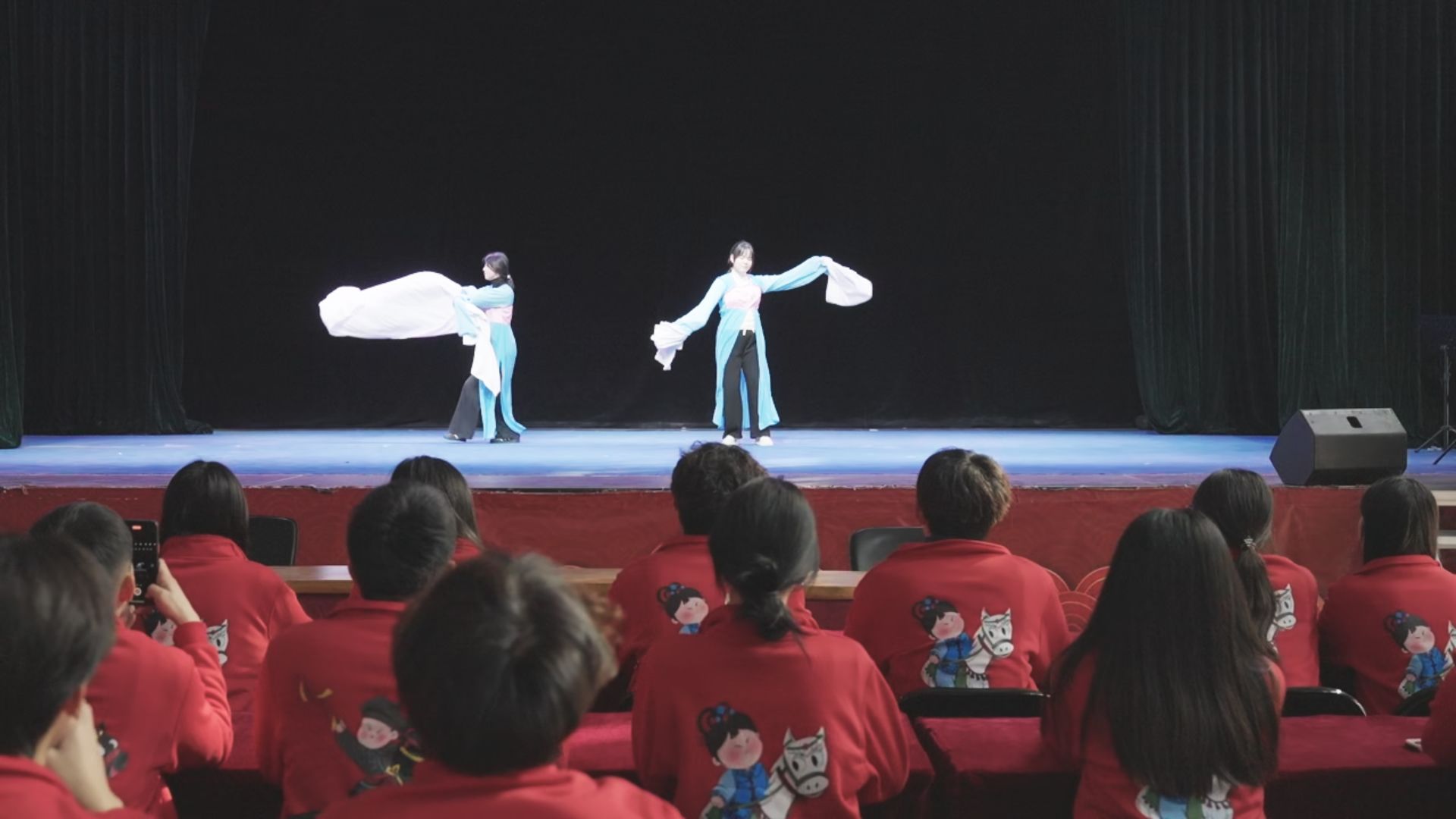 在传承中心,实践队师生现场观看《跑四美》《唐二别妻》等经典剧目选段,演员们“唱念做打”间的程式之美,将闽南乡土记忆与文化根脉娓娓道来。在传承人手把手的传授下,两岸青年学子兴致盎然地亲身体验福建省非物质文化遗产——竹马戏的基础身段与唱腔,抬手投足间感受传统戏曲的独特韵味,沉浸式触摸这门艺术的魅力。实践队师生还与传承人交流探讨青年一代参与竹马戏(芗剧)传承的路径方法,得知这里作为浦台两岸文化交流示范基地,每年都迎来两岸演员同台演绎,戏韵声声化作两岸同胞心与心的联结,“芗”音亦是“乡音”。