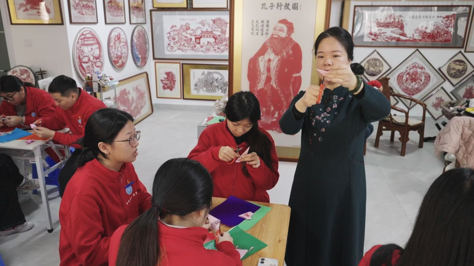 “漳浦剪纸技法明清时便随移民入台,如今台湾剪纸的纹样、手法与我们一脉相承。”欧阳艳君的一席话,道出漳台剪纸的同源之根。多年来两岸剪纸艺人常互访交流、联袂创作,共同打造的作品在海峡两岸巡展,让这门指尖技艺成为两岸文化认同的鲜活载体。实践队师生亲手体验剪纸创作,在一折一剪中体悟非遗传承的匠心,读懂了蕴藏其中的两岸同源文化密码。