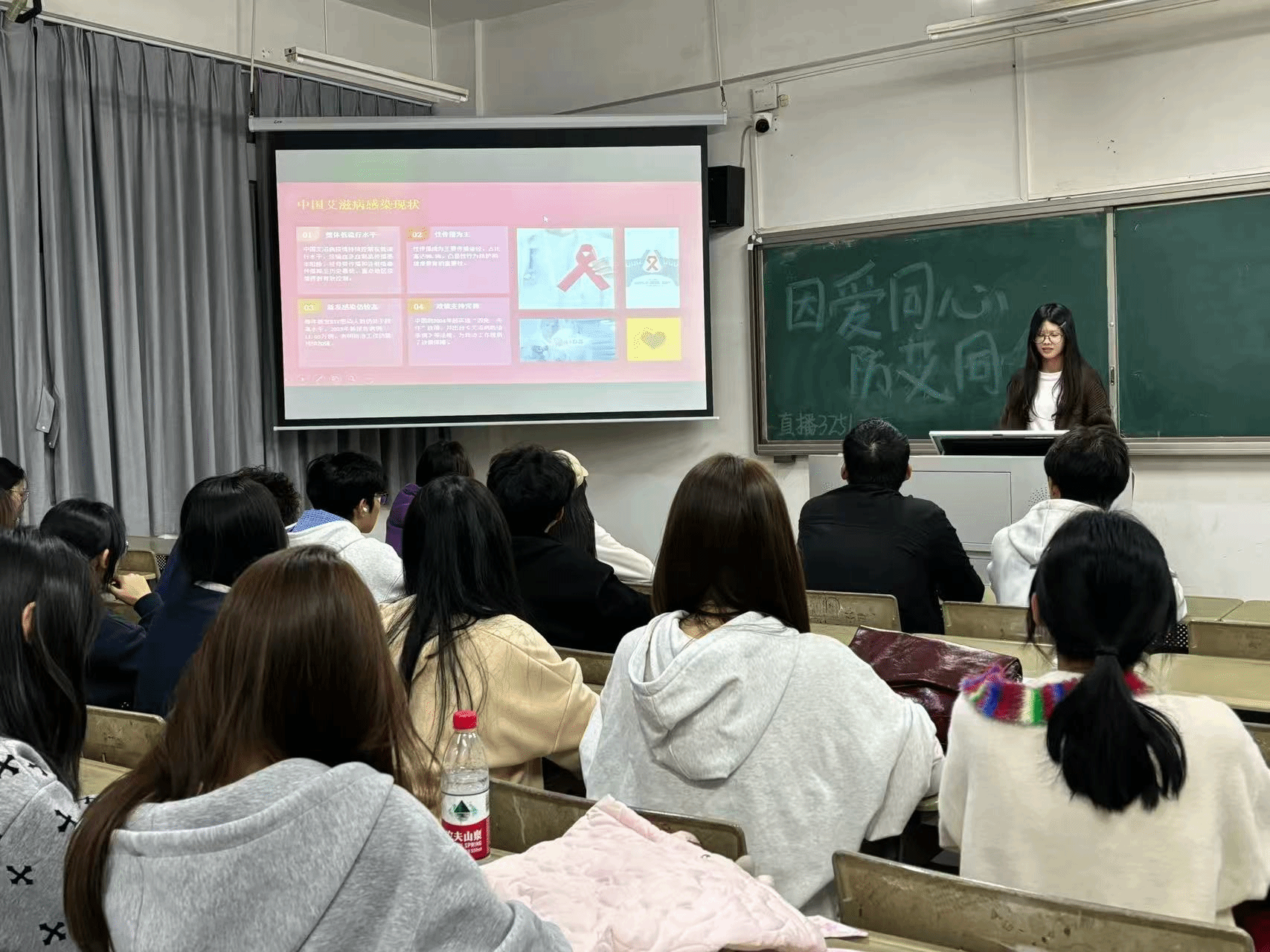 在心理委员陈宥佳的组织下,国商3251班采用PPT演示结合科普动画的形式,系统讲解艾滋病传播途径与科学防护知识,让科学防艾知识更直观地被同学们理解吸收。