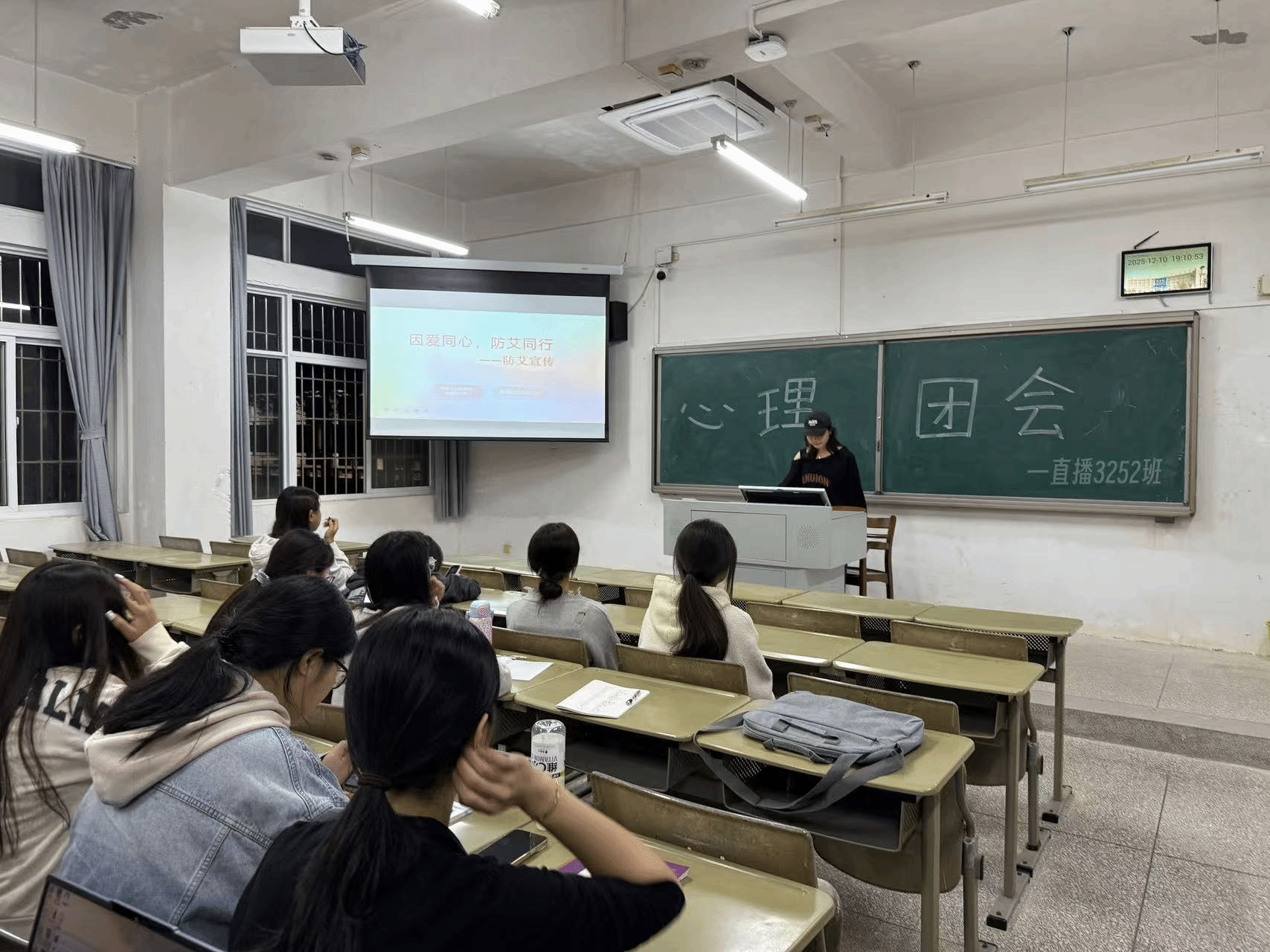 在心理委员姚婧怡的组织下,直播3251班采用PPT演示搭配互动游戏的形式,聚焦艾滋病防治知识的普及与观念引导。