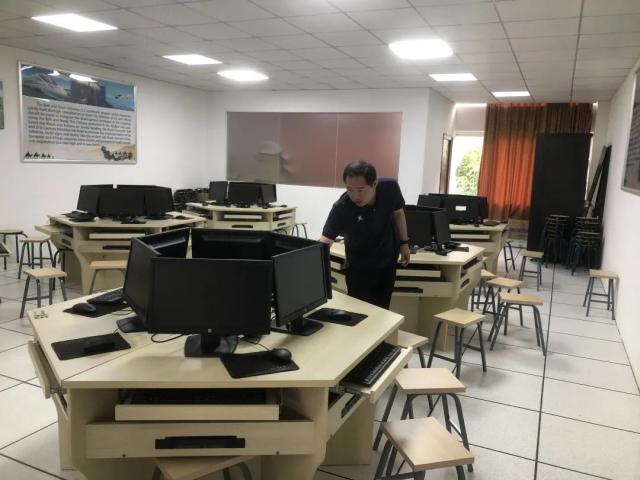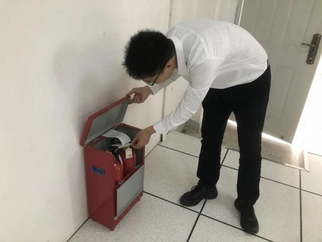 黄昆仑检查了实训室的灭火器台账记录,指出实训室灭火器管理要更加细致,确保配备数量合理、种类合适,摆放位置合理,定期对灭火器进行检查,用电设备的管理也要更加注重细节,实训室内电脑、显示器、投影仪等不会出现漏电、损坏等问题,有定期需充电的设备或电池,在充电后要及时拔掉插头,及时归位。