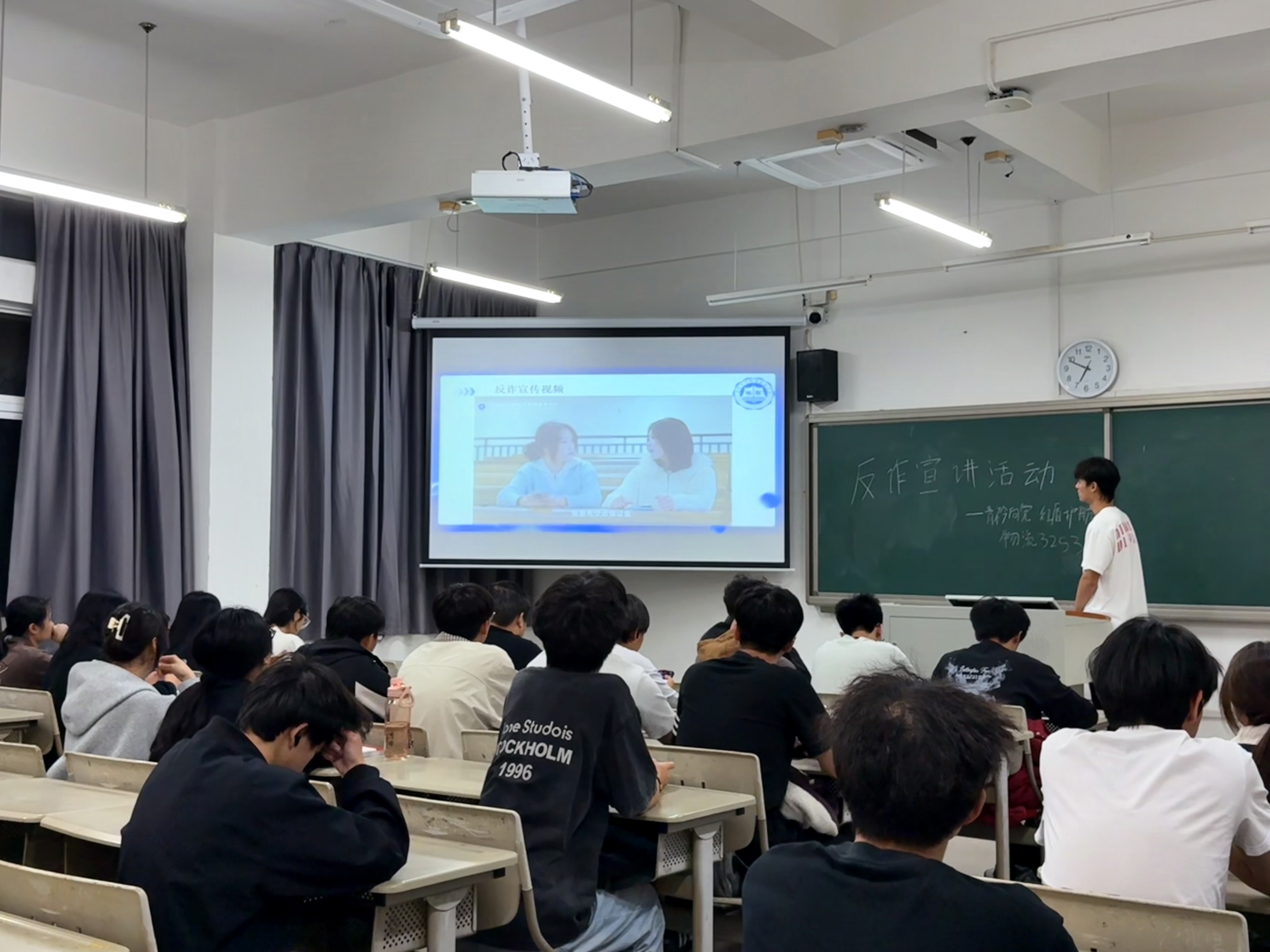 搭建“辅导员+班主任+入党积极分子+班级安全信息员”多元联动反诈宣讲团,充分利用学院晚自习、课间等碎片化时间,以分组搭档、定点对接方式,形成全员反诈、全域覆盖的校园反诈治理新格局。宣讲成员全程参与反诈宣讲,化身同学身边的反诈“贴身顾问”,实现反诈教育全天候、不断线。