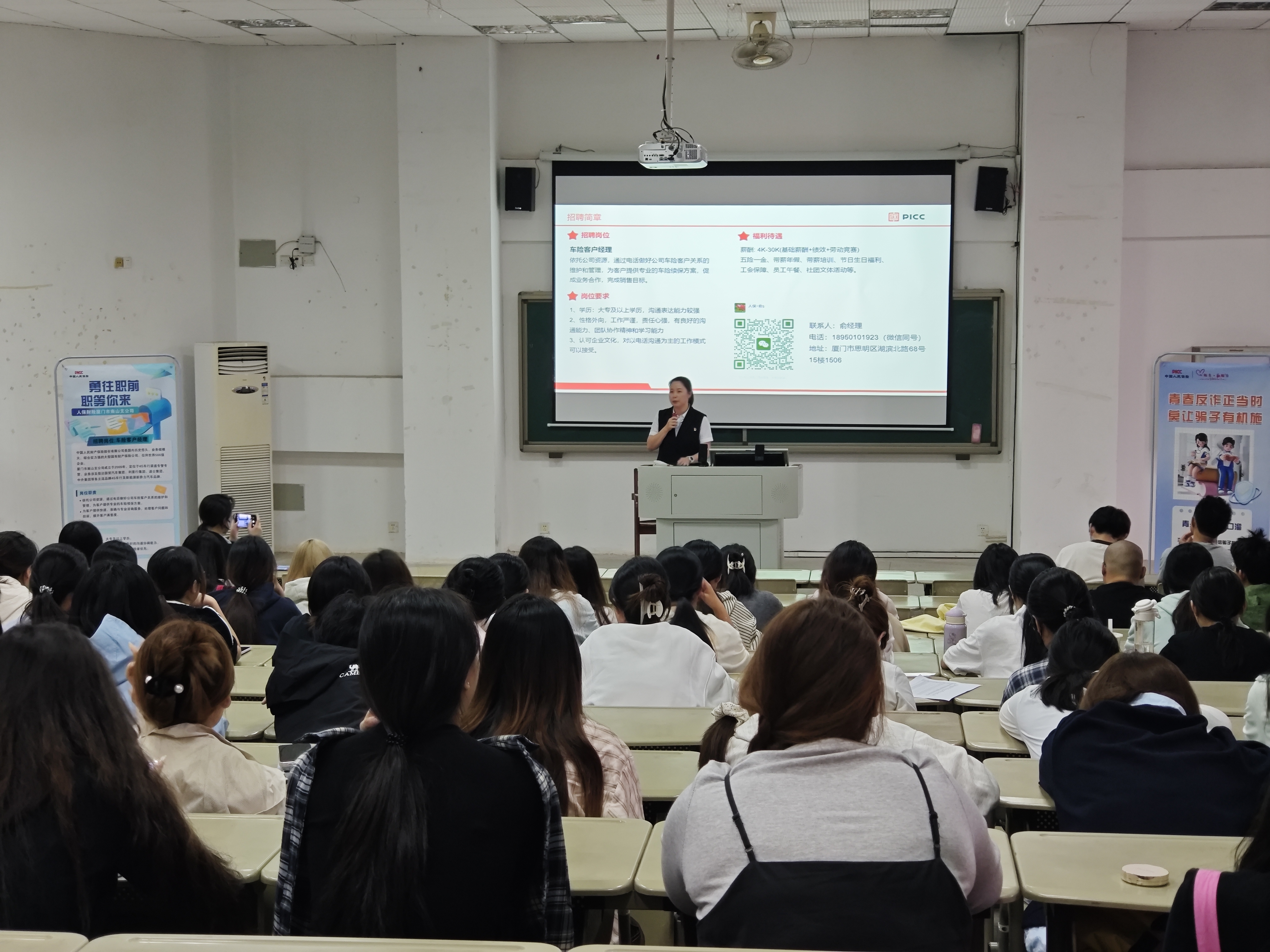 为深化产教融合,助力毕业生精准就业,10月28日,国际商贸学院携手中国人民财产保险股份有限公司厦门市南山支公司开展面向国际商贸学院应届毕业生的专场招聘会。招聘会聚焦毕业生就业需求,吸引了两百余名应届毕业生参与,现场氛围热烈,最终20名同学成功进入后续面试环节。
