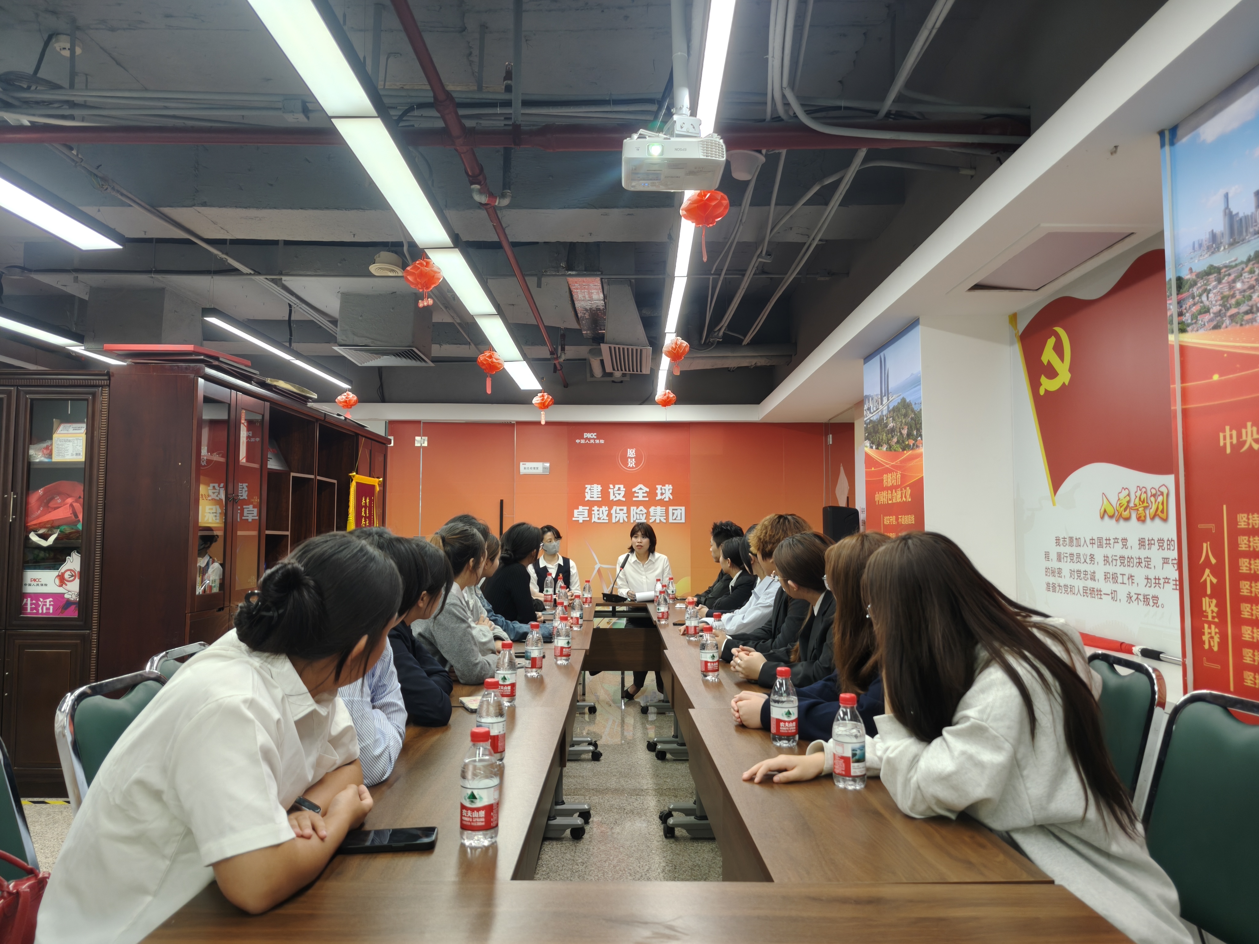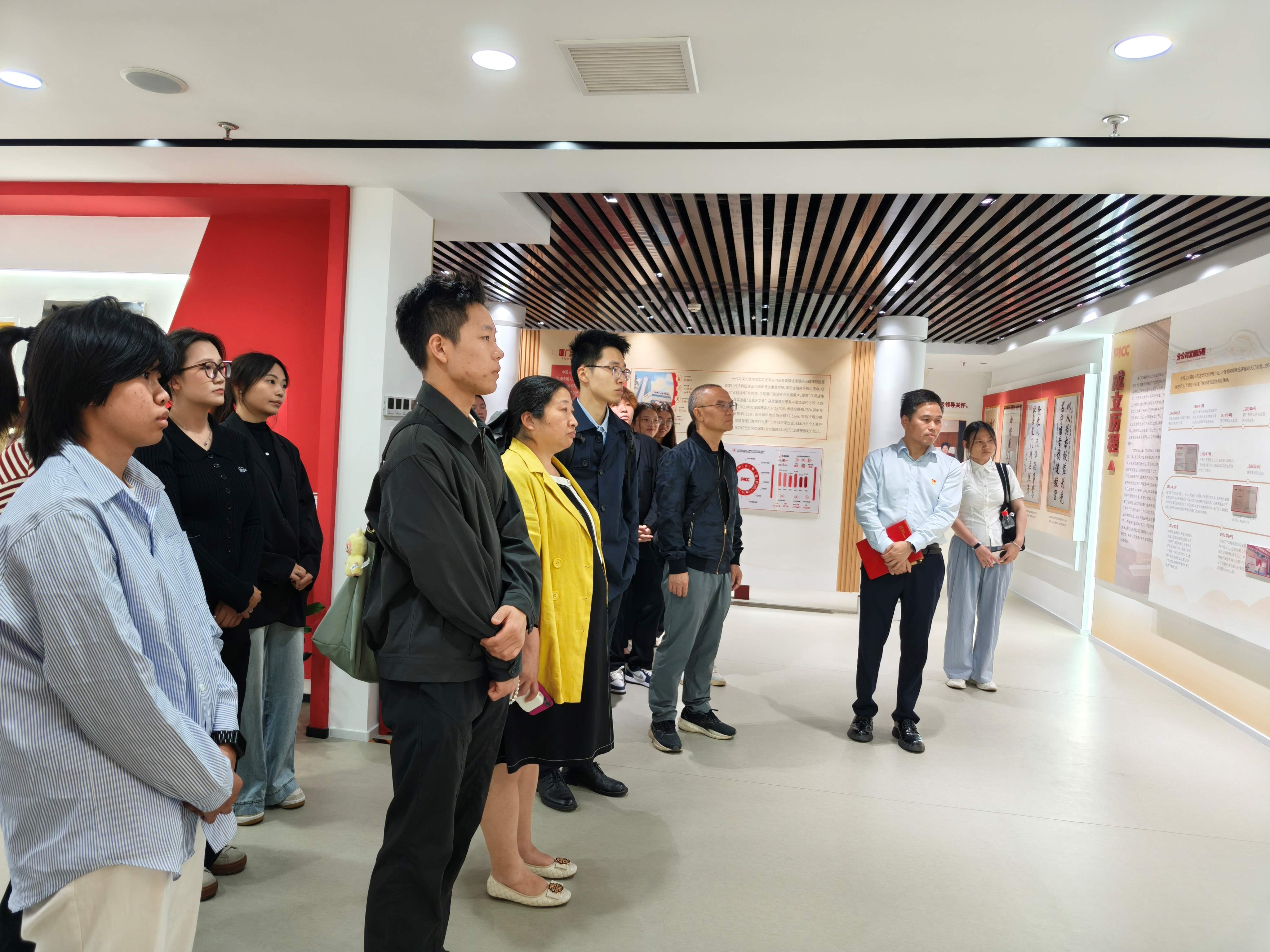 中国人民保险股份有限公司厦门分公司张婷婷带领师生参观了公司的红色文化馆。展馆内容详实丰富,涵盖了中国保险行业的发展历程,公司概况、成长轨迹、业务范围和社会责任。通过参观,同学们对保险行业的发展历程和中国人民保险股份有限公司的企业文化有了更加深入的了解。