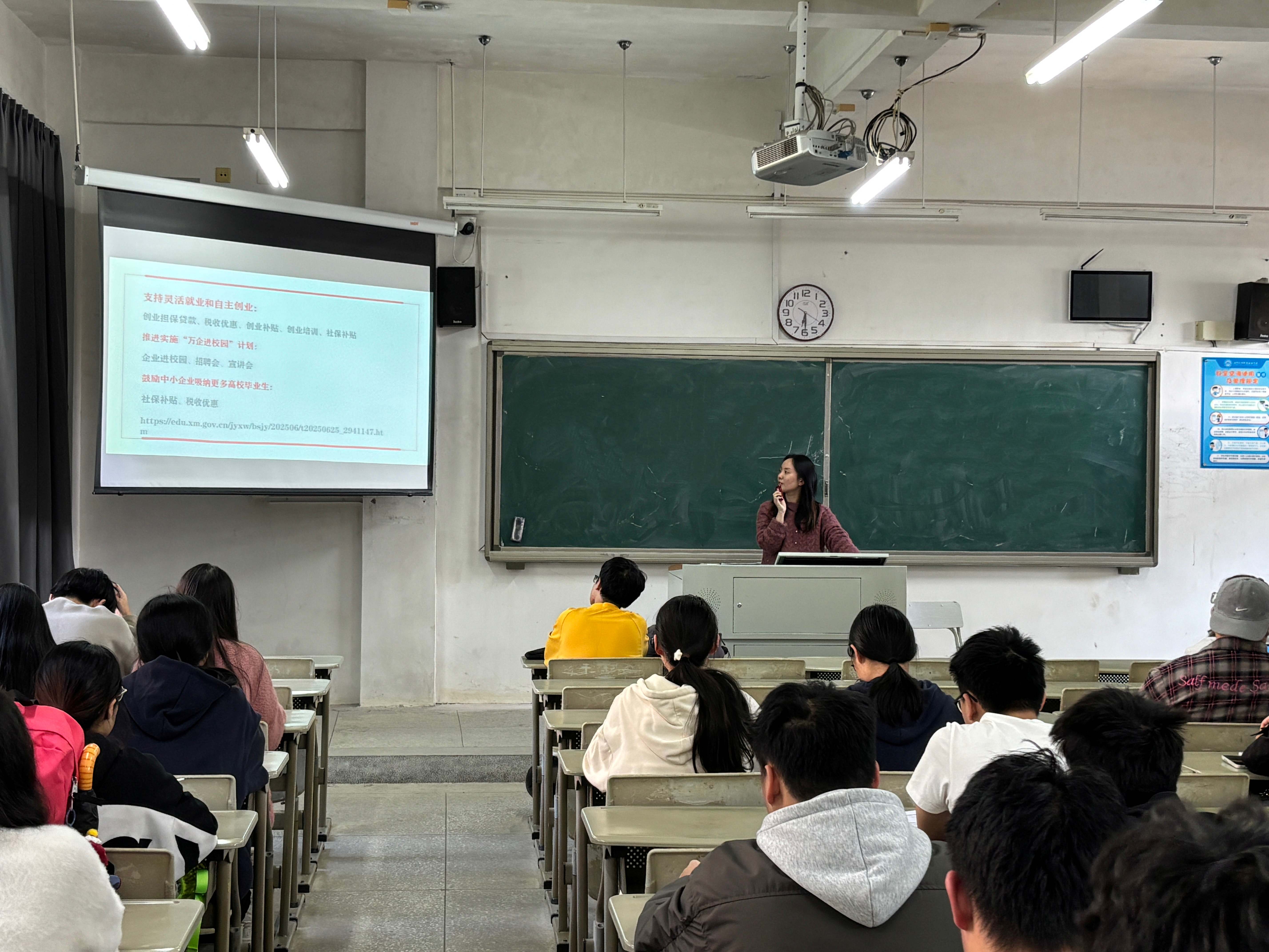 王钇莎老师系统梳理了当前大学生就业创业等系列政策措施,以厦门市为例,详细解读涵盖就业奖补、创业扶持、住房保障等方面的具体内容,鼓励同学结合自身规划,主动研究并善用各项利好政策,将个人成长融入社会发展,积极稳妥地迈出职业生涯的关键一步。