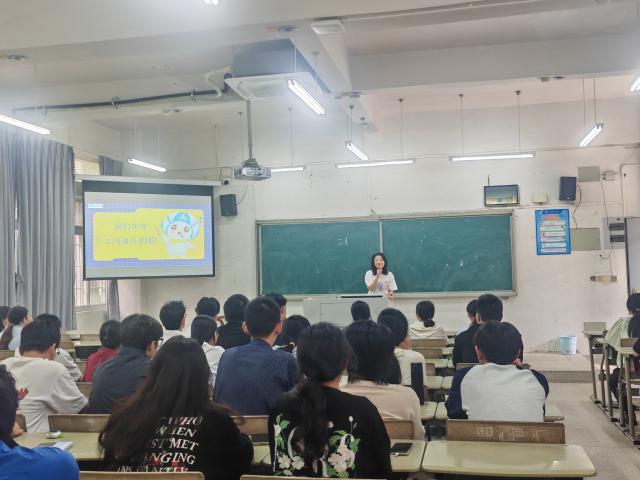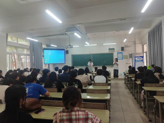 在此次招聘会上,客服运营中心经理王亮采用宣传片播放、PPT 讲解以及现场互动提问等多种方式,为同学们全方位地介绍了企业的基本情况、业务范畴、公司环境、薪资福利、职业发展路径以及星火班的相关内容。现场的同学们热情高涨,就自己关切的问题与企业进行深入的沟通与交流。