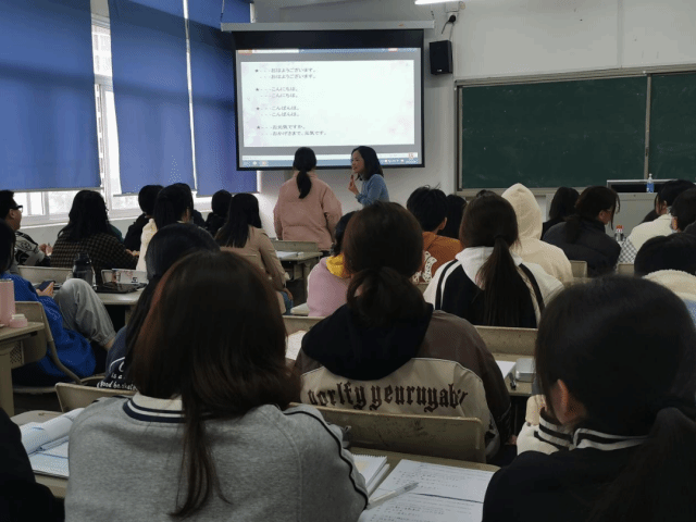 连女士还与同学们分享了日常工作中日语常用的寒暄语,结合职场实例讲解寒暄语的使用场景,并让同学们跟读后自己大声说出寒暄语,更好地理解如何使用寒暄语。