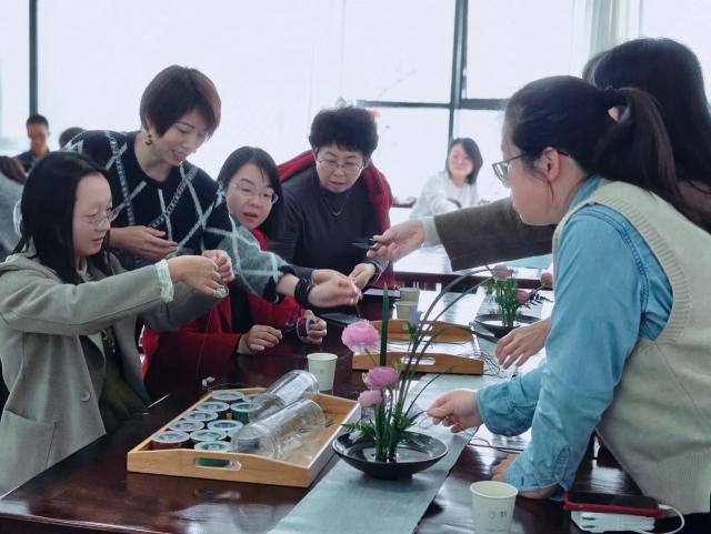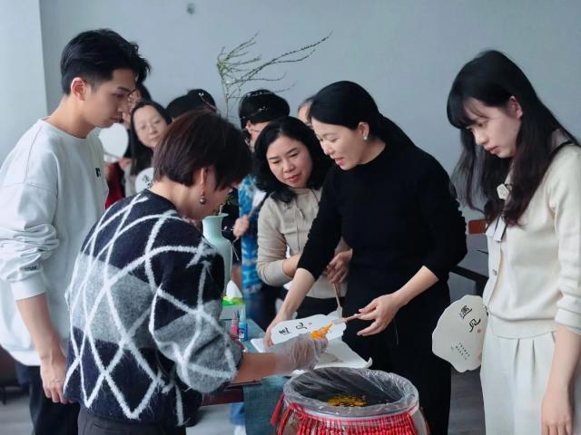 绳结、漆扇制作完成后,大家围坐一圈,细品香茗,畅谈生活与工作中的点滴感悟。许多老师表示,此次活动不仅增进了同事间的感情,也让大家在忙碌的工作中收获了一份难得的宁静和放松,感受到节日的温暖与力量。张老师说,本次活动是一次技艺体验,更是一场心灵盛宴,体现了学院对老师的关怀与温情。学院领导亲临现场,与老师亲切交流,鼓励大家在传承传统文化的同时,关注身心健康,共同营造和谐的人际关系和工作氛围。