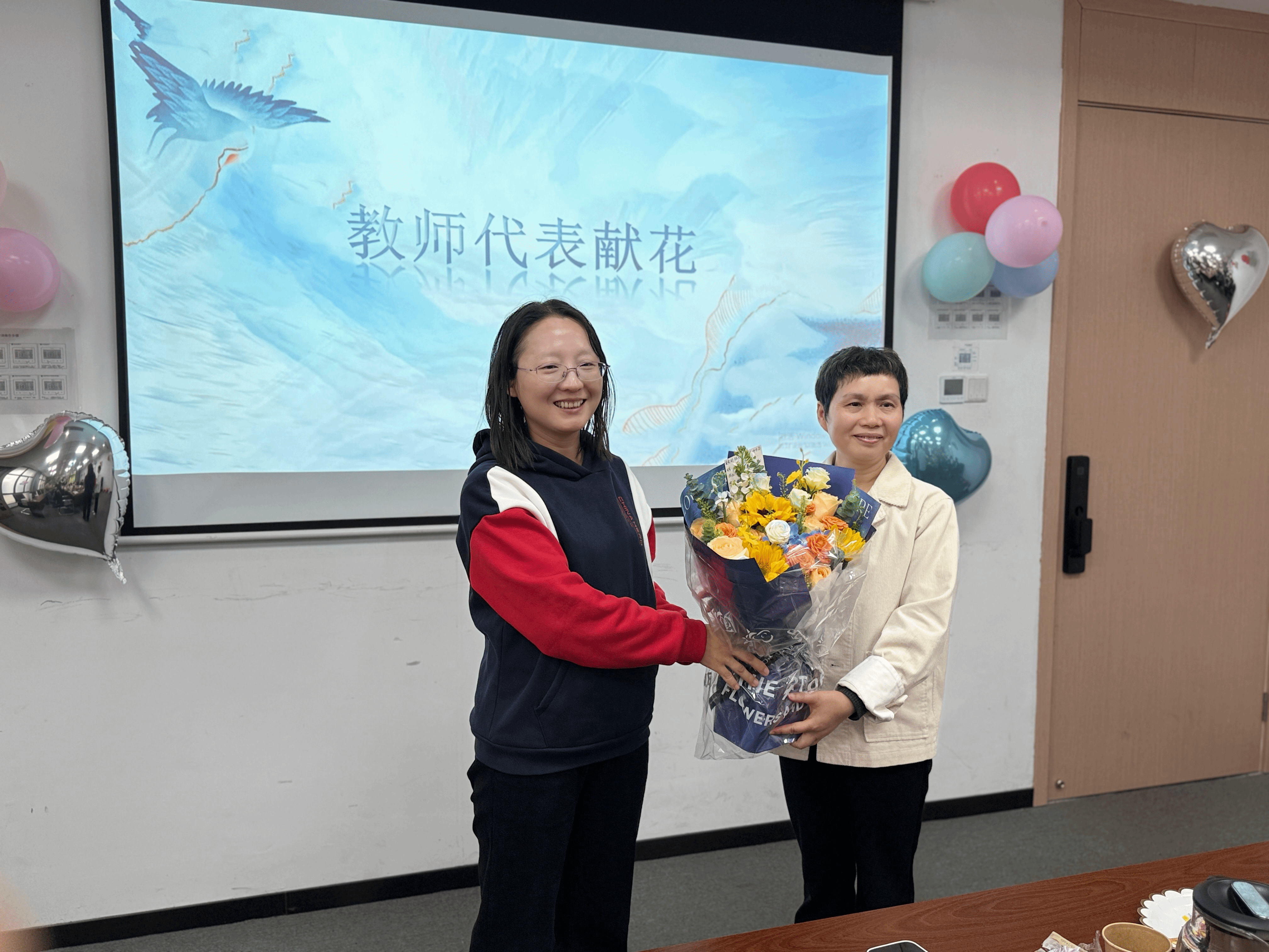 一束鲜花,一份深情。罗娟娟为林新梅老师送上绚丽鲜花,表达学院的关怀与祝福,致敬她扎根教育一线的无悔岁月。花香弥漫间,藏着对“倾囊相授”的感恩,对“默默守护”的铭记,让教育的温度,在这一抹芬芳里静静流淌。