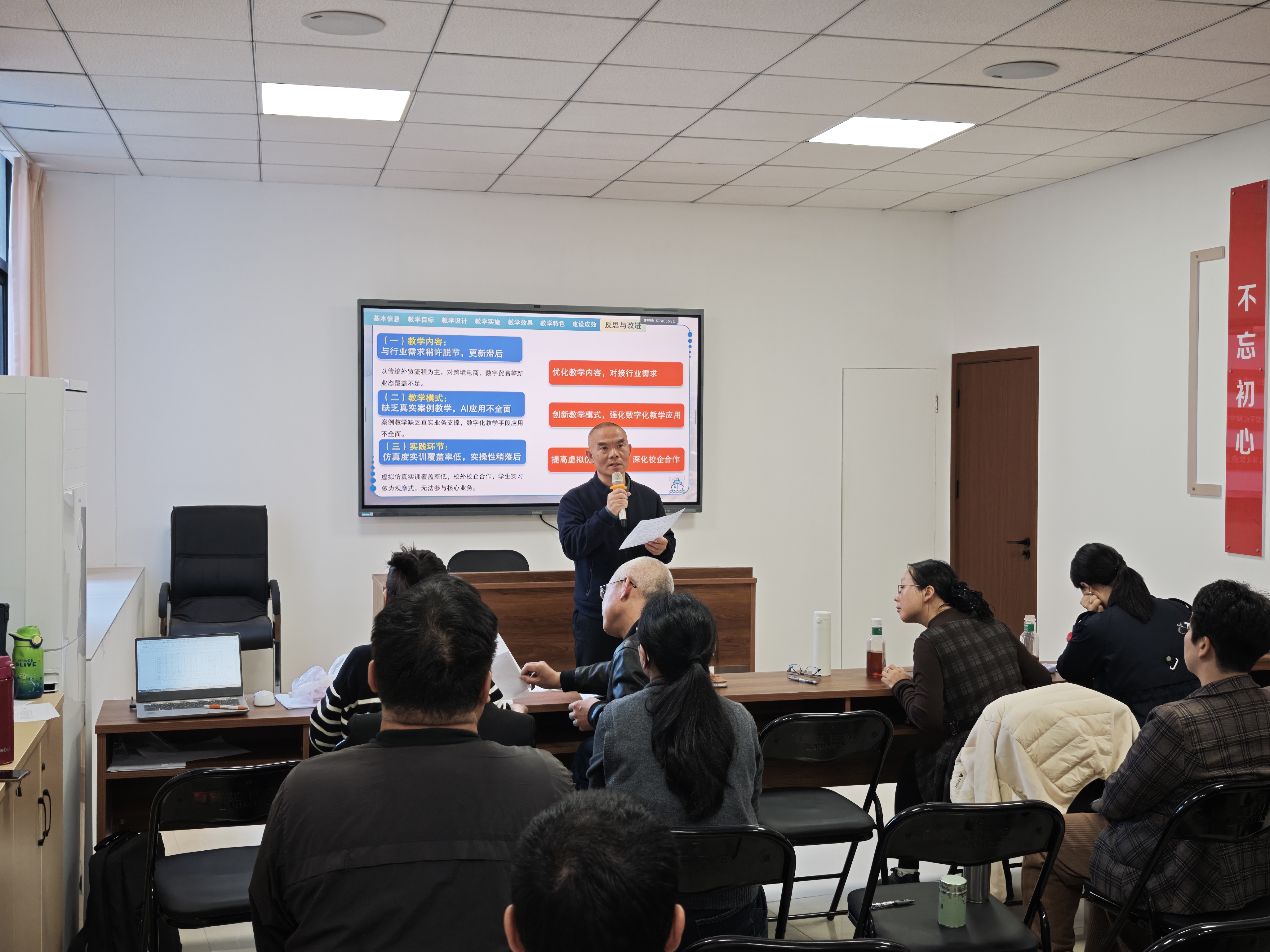 赛后,学院党委书记王火灵、院长缪明聪做了点评。缪明聪肯定老师将产教融合落到实处的教学智慧,王火灵则赞誉老师在课程思政与价值引领上的用心用情。