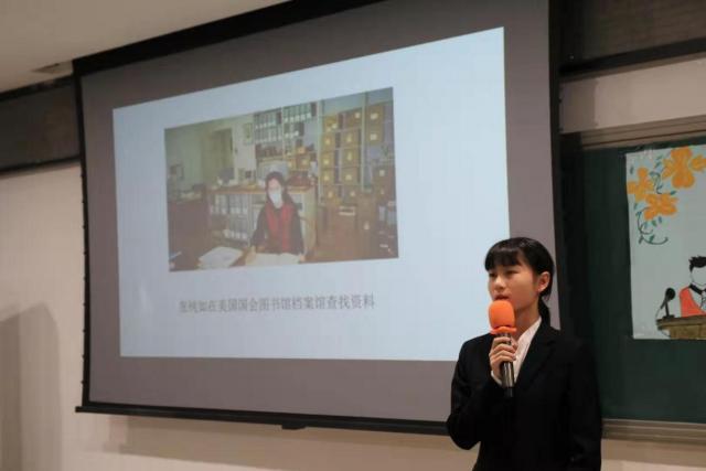 五号选手邮轮3191郑萁姝演讲的主题是《勿忘国耻》,讲述了张纯如的故事。张纯如是第一位向西方社会披露南京大屠杀惨案和真相的华裔女作家。面对西方记者的质疑,张纯如眼神坚毅、从容笃定、无畏无惧。勿忘国耻,牢记历史的教训,爱我中华,是历史对我们的要求,是时代赋予我们的使命。