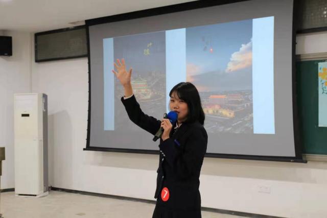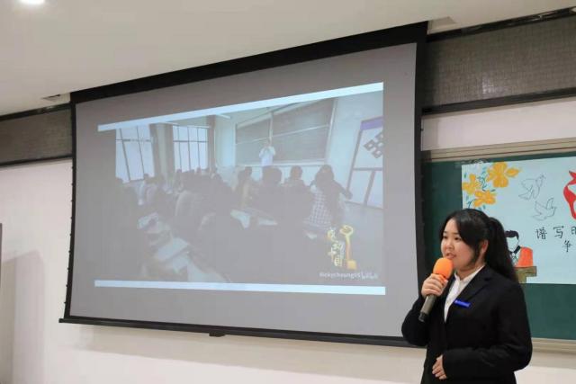 四号选手国商3194吴佳静演讲的主题是《社会》,以一则泰国广告引出“眼见未必为实”,社会中的舆论也是如此,呼吁广大青年应谨言慎行,让自己的力量发挥出其真正的正能量。