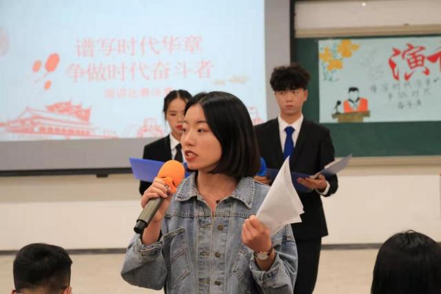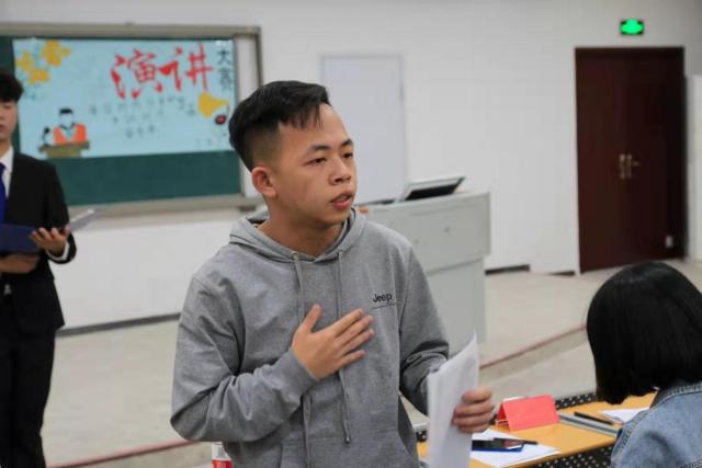 活动伊始,主持人介绍比赛的规则,本次比赛选手将从“爱国”、“励志”、“社会”三大自主选题,按照抽签顺序依次上台进行演讲。
