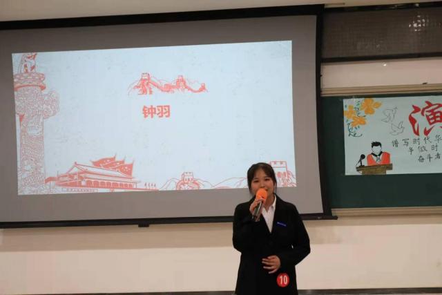 十号选手国商3193钟羽演讲的主题是《人生在勤,争做时代奋斗者》。“勤”是中国劳动人民最本质的特征,也是中华民族最传统的禀赋。正是因为勤劳,才能让各行各业焕发生机,我们都应争做时代奋斗者。