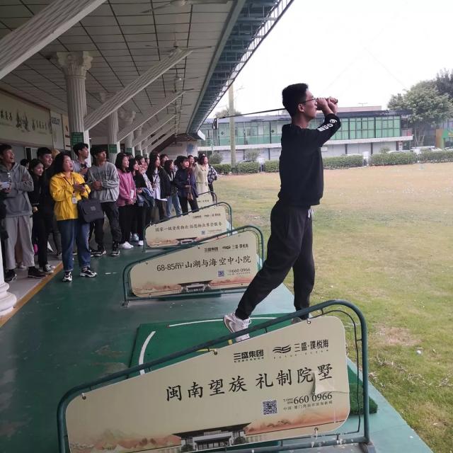 第二天,师生们继续前往厦门奥林匹克•诺斯蒂文体公园。奥林匹克.诺斯蒂文化体育公园是国内首家、福建省内面积最大、文体项目最齐全的大中型文化体育综合体。该公园是国家体育总局“全国体育产业示范项目”、中国汽车摩托车运动联合会“三星级”房车露营基地、中国高尔夫协会青少年培训中心。该公园是以体育休闲产业为核心,以体育旅游、体育研学、休闲养生为一体的城市综合休闲综合体。厦中泉(厦门)文旅产业有限公司赵万军总经理、何敏总经理助理及销售经理刘晓娜热情接待了我们。赵万军总经理亲自为师生们进行导览解说。赵总首先在会议室进行企业讲座,介绍新时代对体育产业发展的要求、企业文化以及园区举办的研学相关活动等。随后带领同学们体验高尔夫球场,参观奥运之窗博物馆,了解奥运会的发展史以及奥林匹克五环标志、会旗、会歌、格言以及奥运冠军等。看着满墙的金牌荣誉,同学们心中不禁对各位奥运冠军和体育先驱产生无尽的崇拜。同学们还参观了搏击台、乒乓球桌、空中瑜伽等各种健身场所,房车基地等。