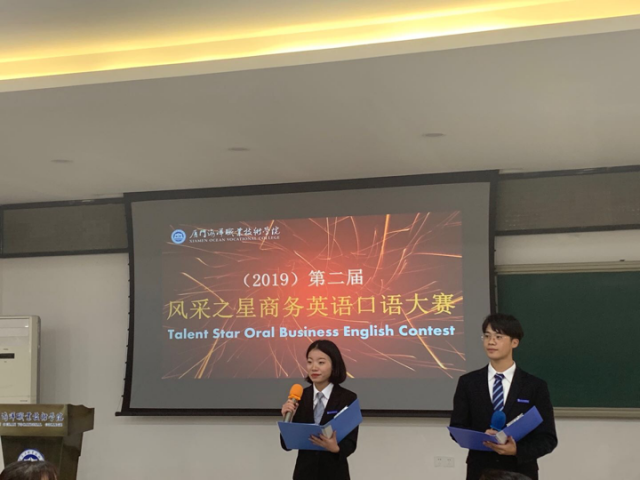 2019年12月10日下午,由厦门海洋职业技术学院工商管理系外语协会主办的第二届风采之星商务英语口语大赛在T1教室举行。工商系党总支副书记张宇泉、工商系副主任徐薇、教师代表以及学生代表到场参加活动。