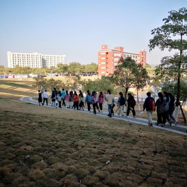 此次《模拟导游》实训课程以翔安校区校园作为讲解对象,54名旅游管理专业学生利用课堂导游辞创作技巧,手持导游旗,进行实地讲解。按照欢迎词、行程安排及游览、用餐、致欢送词及送团的实际带团流程进行安排。根据实际情况,游览路线从翔安校区西校门、运动场、师生餐厅、孔子造像、教学楼、实训楼、人工湖、嘉庚造像、图书馆、嘉庚楼、宿舍楼、南校门,将线路优化,提高实训课程的意义。