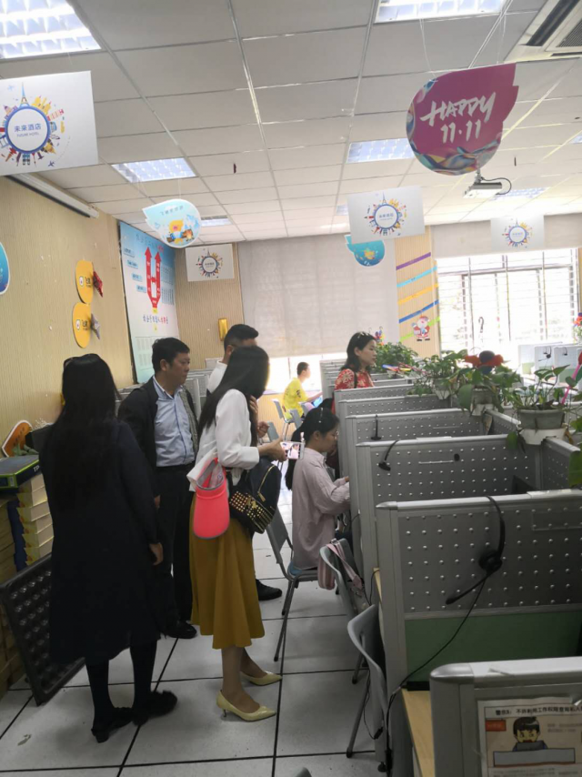 随后,调研组前往旅行社管理系,系主任韦小良、系办公室主任陈小愉热情接待了调研组。旅行社管理系开设导游(含国际导游方向)、电子商务两个专业,其中导游专业为国家示范性骨干建设专业、全国职业院校旅游类示范专业点,该系学生参加全国导游员资格证书通过率保持在90%以上。此次座谈会主要关于导游证应试技巧、旅游电子商务课程、智慧旅游课程模块等。调研组并就学生社团日常管理、专业建设、新课程推行等多个方面同韦小良主任进行深入探讨,均得到满意解答。随后调研组一行参观中央财政支持的职业教育实训基地—导游“四位一体”虚拟仿真实训中心、出境领队实训室、电子商务实训室、旅行社经营管理实训室、电子商务实训室与阿里旅行合作共建的生产性实训基地——飞猪客户满意中心。整个参观学习过程中,浙江旅游职业学院先进的教学设施、浓厚的校园文化氛围、独具特色的办学理念和校园环境美化使调研组耳目一新,受益匪浅,教师们不断用相机记录下精彩的画面。