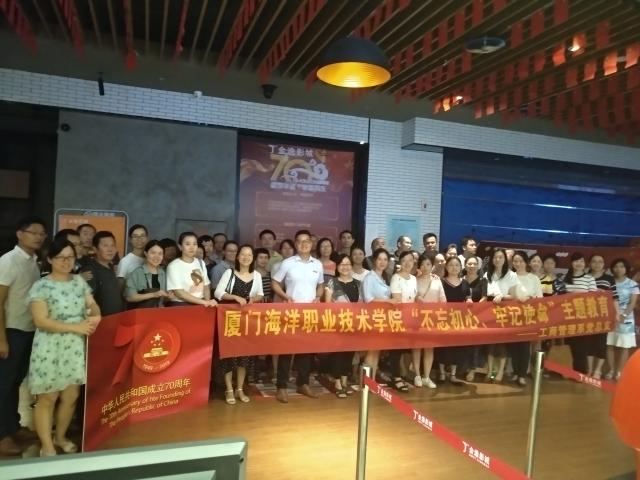 为贯彻落实《中共中央关于在全党开展“不忘初心、牢记使命”主题教育的意见》等重要文件精神,10月8日17:20,工商系党总支开展“不忘初心、牢记使命”主题教育特色党日活动,于翔安区金逸影城集中观看爱国主义题材电影《我和我的祖国》,工商系党总支副书记张宇泉以及全体党员老师到场参加。
