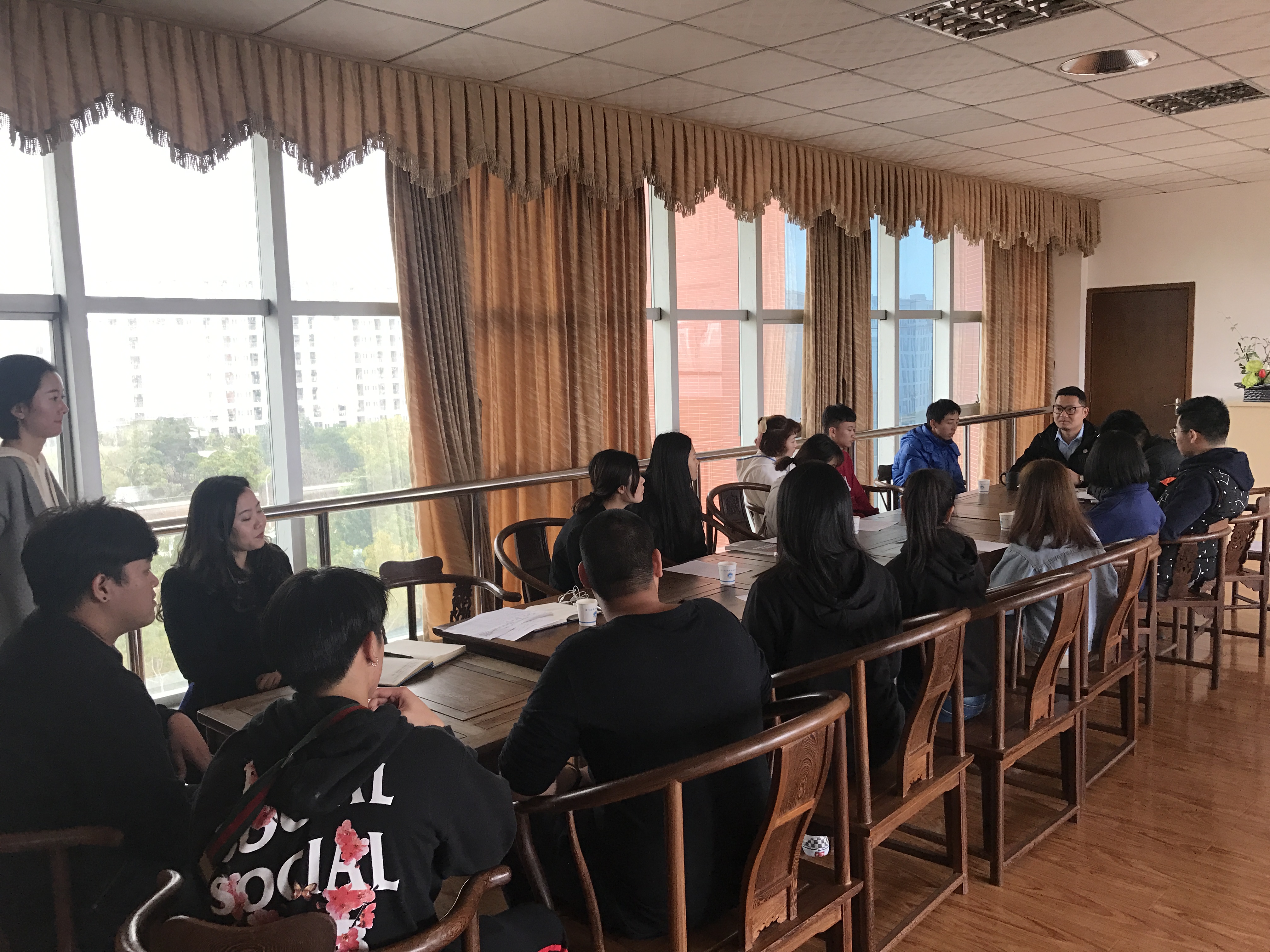 2019年2月26日下午,我系在办公楼教工之家会议室召开2018级泰国留学生座谈会,来自全系的7名泰国留学生及其舍友、各班辅导员参加了座谈会,工商系党总支副书记张宇泉老师、教务处陈扬屹捷老师以及汉语授课王萍老师出席座谈会并与学生现场交流。