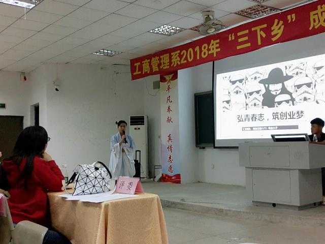 我系于11月12号,在T1教室举行了2018年暑期“三下乡”成果展示及表彰大会。高校“三下乡”活动是一项意在提高大学生综合素质的社会实践活动,每年仲恺,我校各系都会由老师带领学生以志愿者的形式组成三下乡队伍,把科技、文化和卫生知识带到相对落后的偏远地区,向当地人传授,活动结束之后,会以摆摊的形式向全校展示,让师生们更好地了解“三下乡”实践活动。