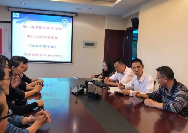 11月13日下午,物流管理专业教研室老师一起到厦门工商旅游学校进行五年专合作办学研讨,受到该校商业部教学主任周林泉和物流教研组组长郑波的热情接待。