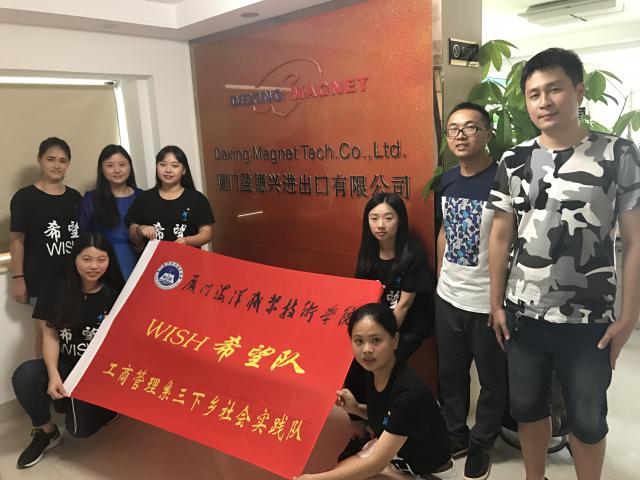 工商系商英专业成立了“WISH希望队”,组织开展了暑期三下乡社会实践活动。在工商系的两位老师张静和黄学周的带领下,此次下乡活动组织去厦门盈德兴进出口有限公司调研。这家公司在业内处龙头地位,其与本国和外国多所著名高校(牛津大学,加州大学,美国麻省理工,东北大学等)有着密切的长期合作关系。