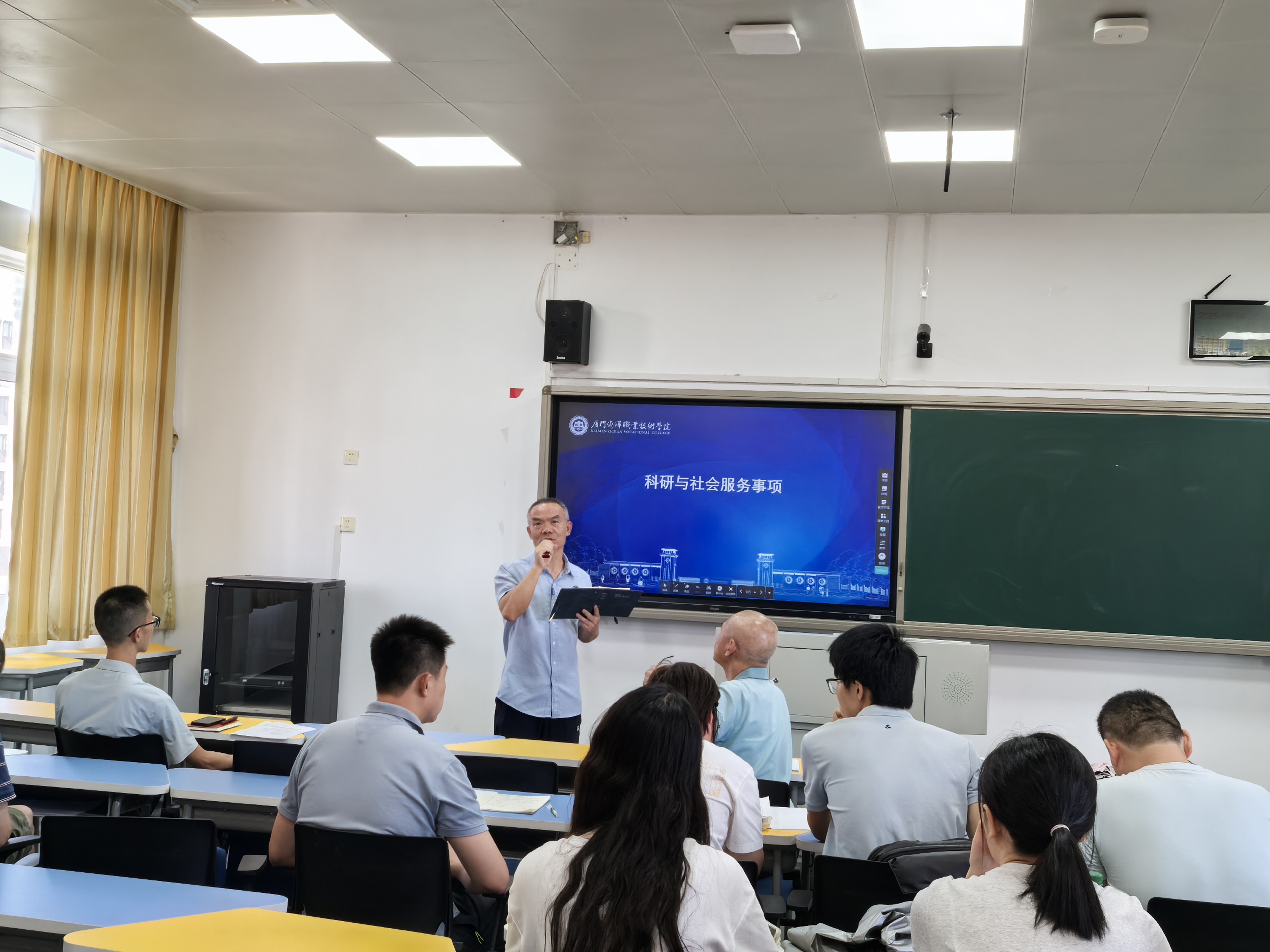 缪明聪重点部署强调了三项核心工作。一是数据采集工作,强调要高度重视,严格按照时间节点与数据标准完成教学、科研、管理等各类数据的采集与上报;二是科研项目申报工作,要求教职工结合学科优势与研究方向,积极申报各级各类科研项目;三是社会服务工作,强调要充分发挥学院专业优势,主动对接社会需求,通过技术服务、人才培训、合作共建等方式,深化产教融合,提升学院服务地方经济社会发展的能力,彰显学院社会价值。