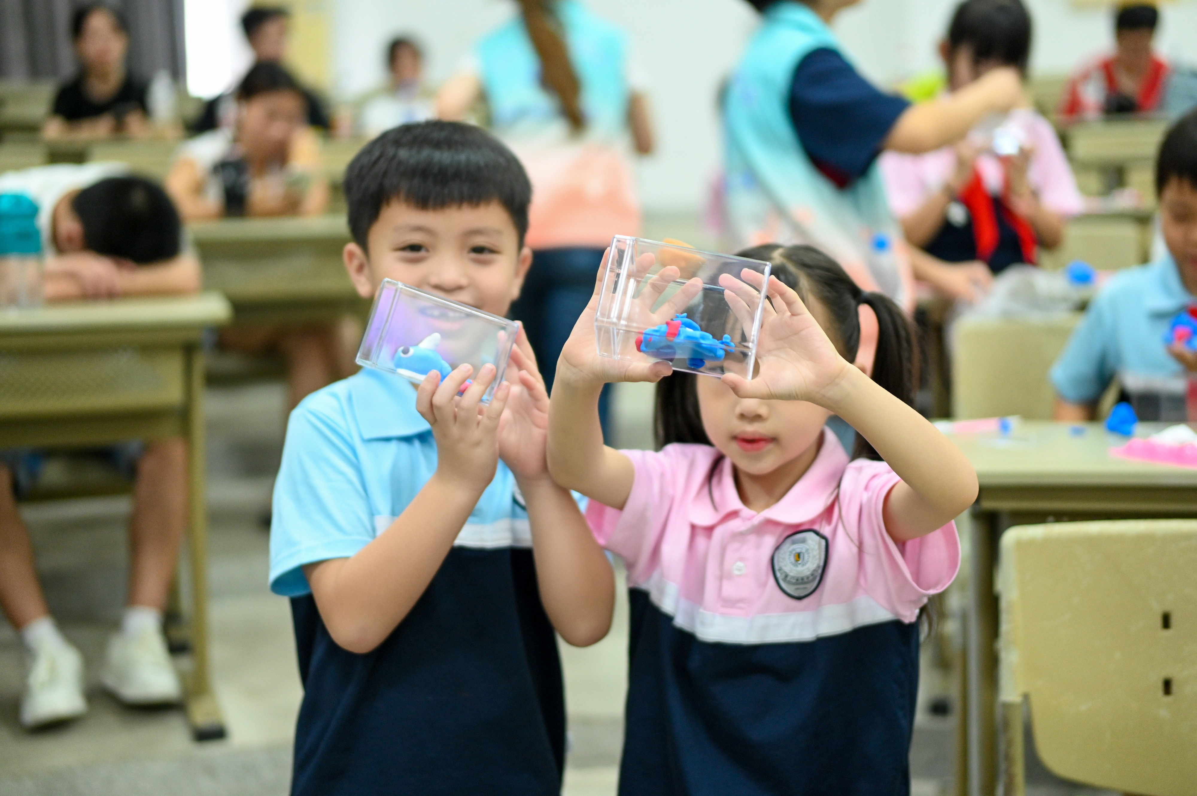 在手工课堂上,对海洋的兴趣转化为亲手创作的动力。教室里,学生手持装着黏土海洋生物(蓝色小鱼、海洋动物造型等)的透明盒子,展示着自己的作品。通过捏制海洋生物,不仅锻炼了动手能力与艺术创造力,更在细致塑造形态的过程中,深入了解鲸鱼、海星等生物的特征,自然而然在心中种下守护海洋生命、保护海洋生态的意识,让“海洋精灵”成为连接自己与海洋保护的纽带。