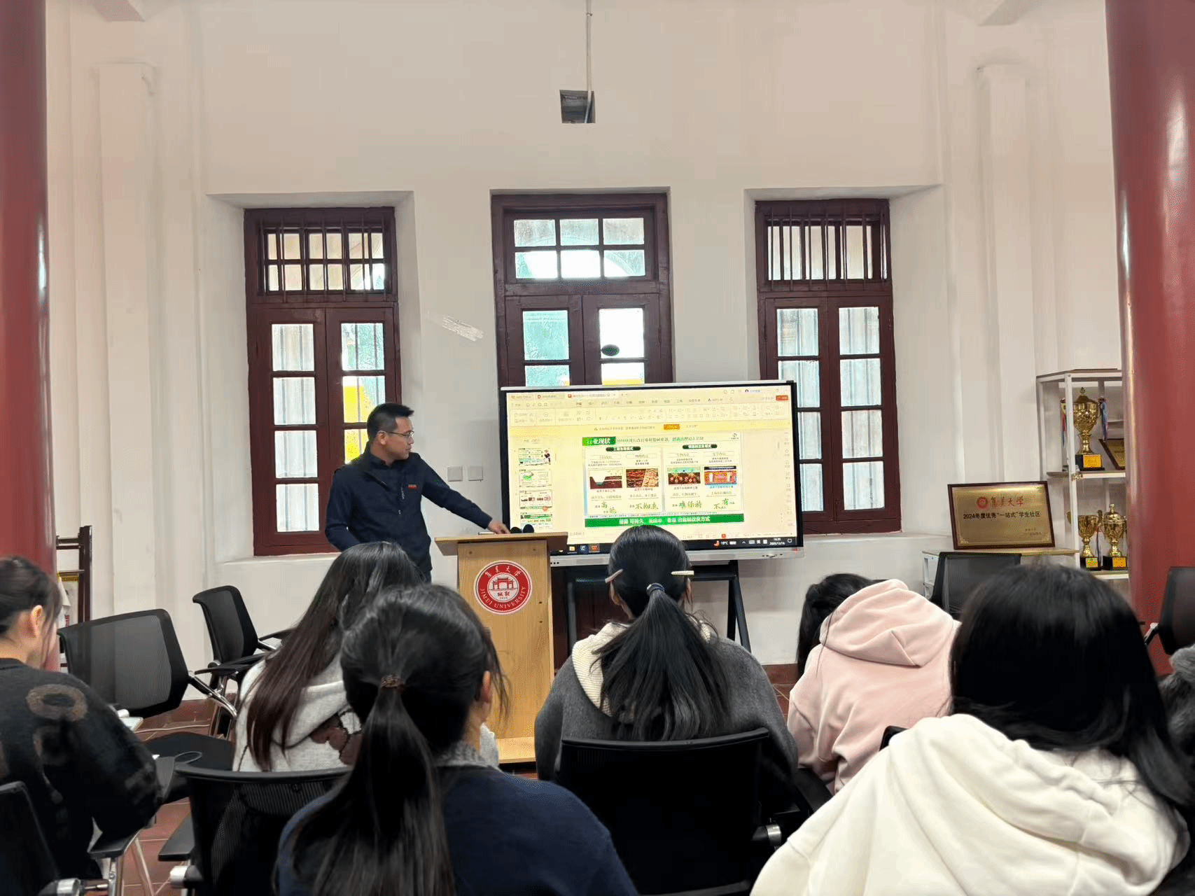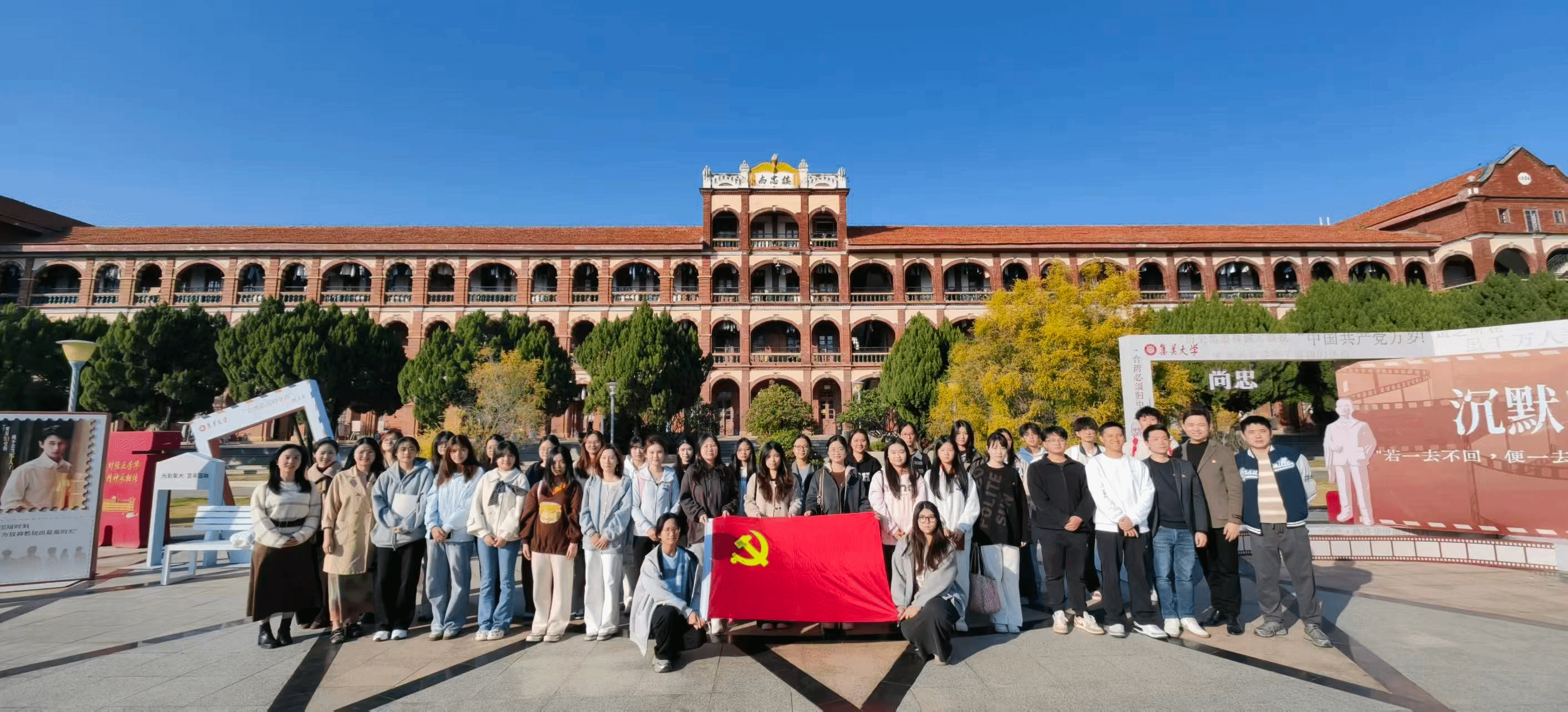 集美大学财经学院党委组织员邹景宇老师带领参观了国家级文物保护单位——尚忠楼群。尚忠楼群不仅是集美学村的历史瑰宝,更是嘉庚精神的生动体现。师生们在红墙黛瓦间聆听其建设历程与历史故事,感悟嘉庚先生爱国兴学的家国情怀,对集美大学深厚的文化底蕴有了更为直观的认识。