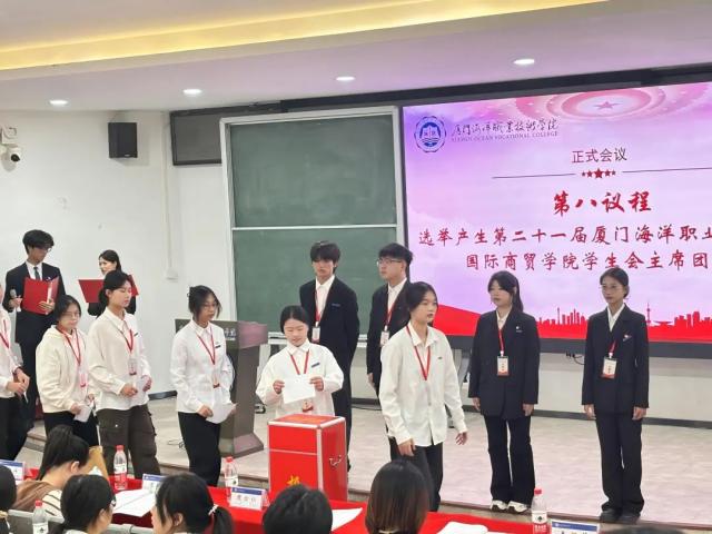 11月28日,我院在翔安校区隆重召开第二十次学生代表大会。学院党总支书记王火灵、副院长徐薇、党总支副书记周仕仁、组织员彭幸子和校团委梅琳以及学院辅导员、学生代表参加。大会选举产生以杨映娜、罗白玉为主席团成员的国际商贸学院第二十一届学生会组织。