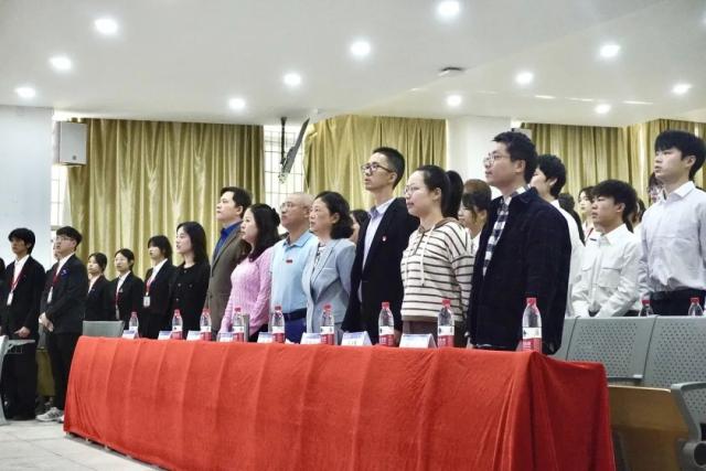 国歌《义勇军进行曲》在会场奏响,在场全体人员起立,齐唱中华人民共和国国歌,大会正式拉开帷幕。