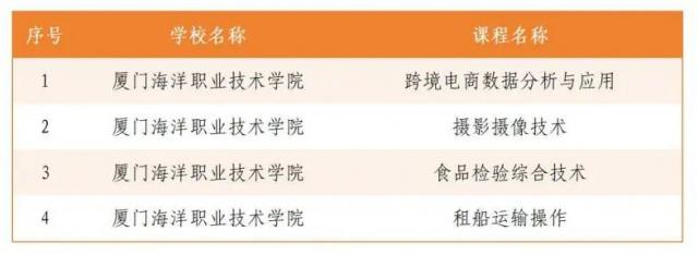 其中,省级职业教育在线精品课程入选23门,为历年来最多;省级闽台融合产业学院入选1个;省级开放型闽台产教融合实践中心入选1个;闽台融合实习实训基地入选1个;省级第二批“海丝学院”入选1个;省级专业教学资源库入选1个;省级职业教育课程思政示范课程入选4门。