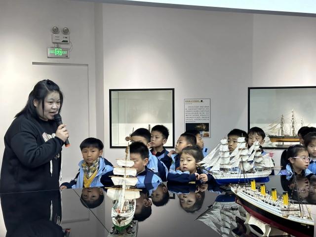 讲解员老师为滨海小学的师生们讲述船模背后的历史故事和航海知识,仿佛穿越时空,感受到了人类航海事业的辉煌历程。不仅让孩子们增长了知识,还激发了他们对历史和航海的兴趣,让他们对海洋文化有了更深的认识和理解。