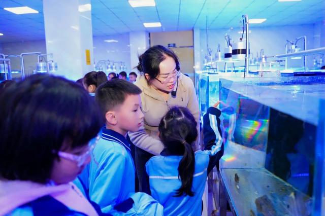 在珍稀海洋生物繁育研究中心,专业老师带着学生们欣赏五颜六色、形态万千的活体珊瑚。同学们都很兴奋,说第一次看到这么多种类的活体珊瑚,真是大开眼界!通过参观和聆听专业老师的讲解,滨海小学的同学们不仅学习到了珊瑚的生长周期、培育条件以及生态价值等方面的知识,加深了对海洋生态知识的了解,也激发了他们对海洋生态保护的兴趣,让他们意识到了保护海洋环境的重要性。